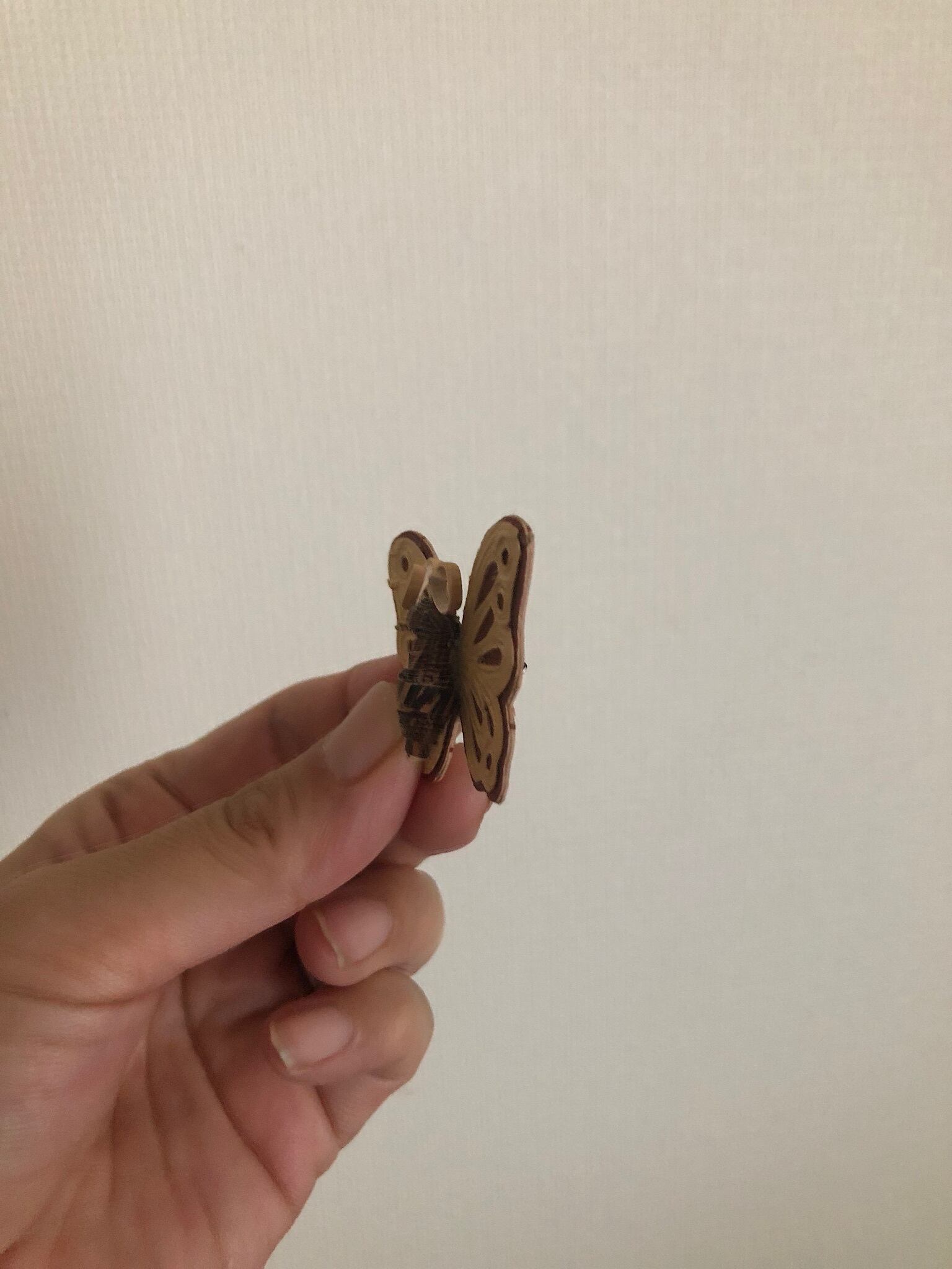 白樺の樹皮を重ねて作られた可愛いらしいちょうちょのブローチ。