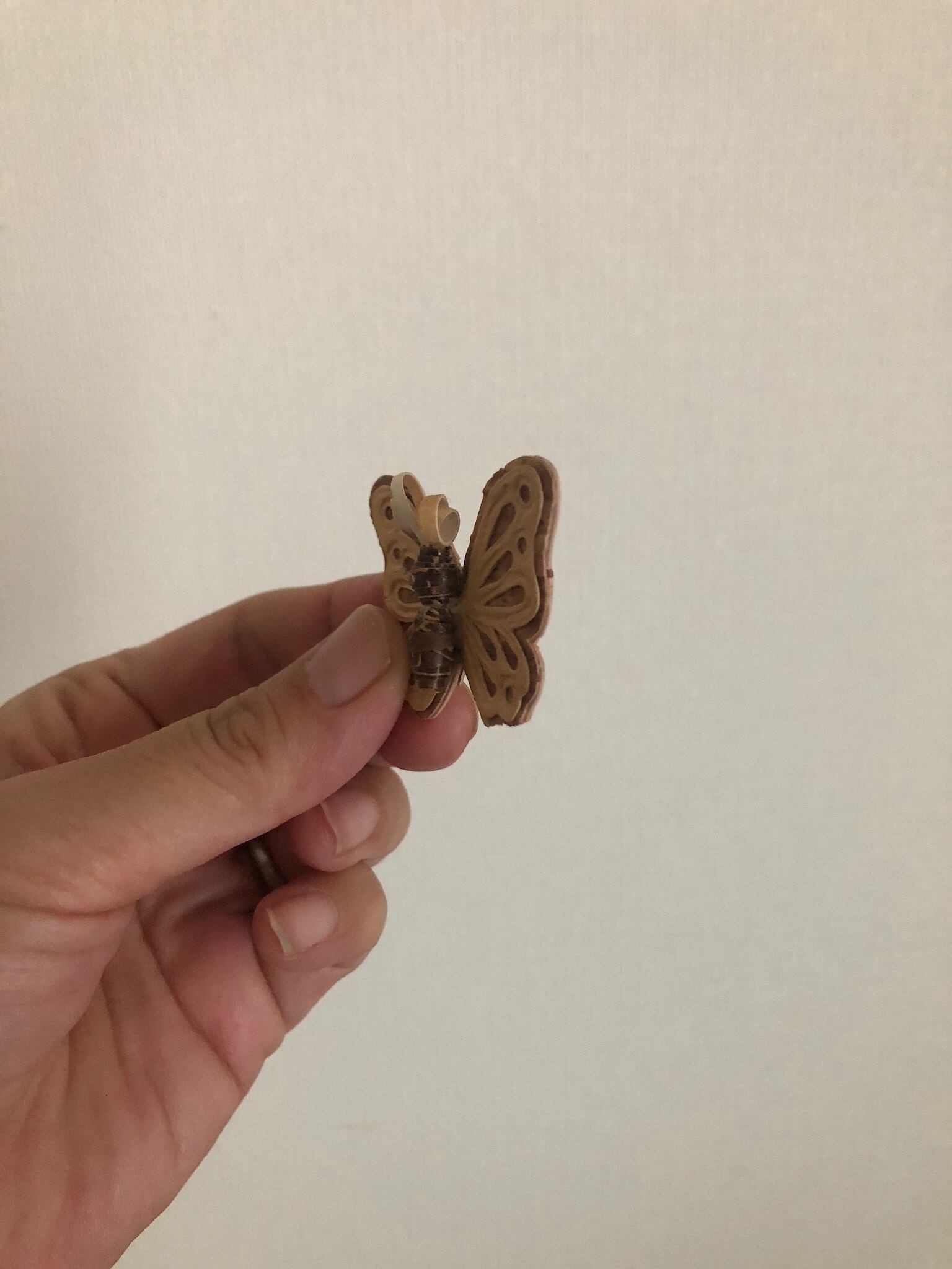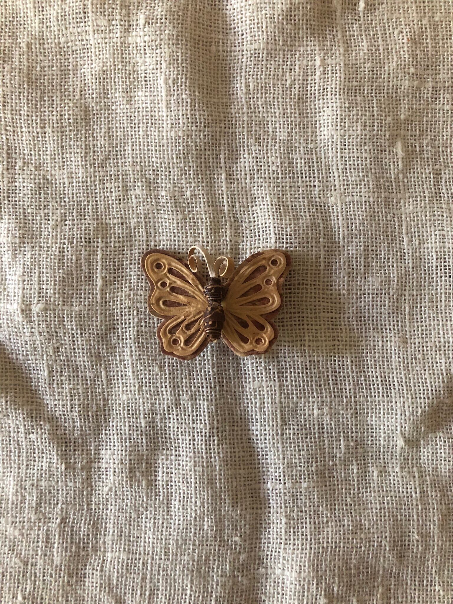 白樺の樹皮を重ねて作られた可愛いらしいちょうちょのブローチ。