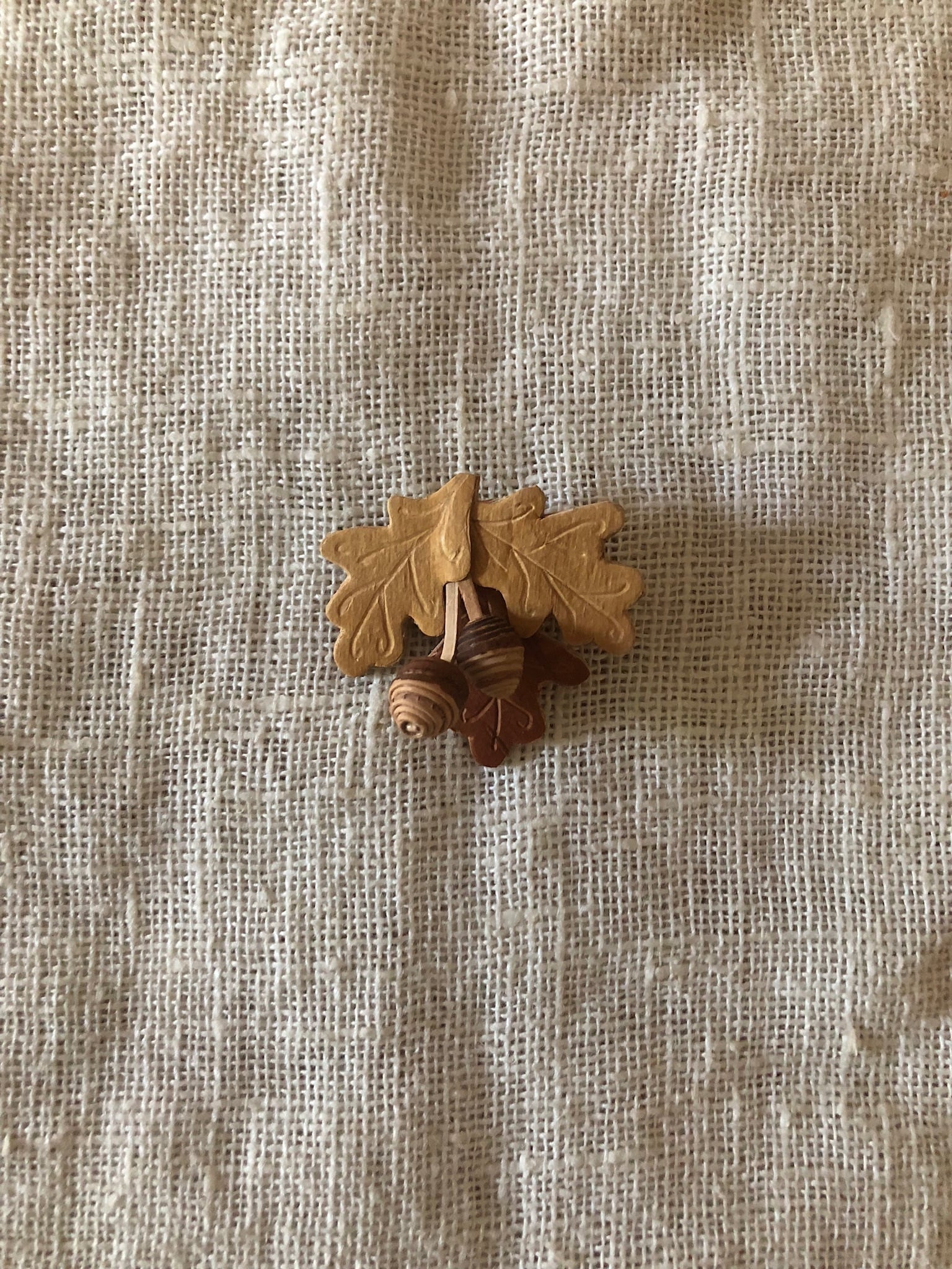 ロシアの白樺作家さんが作った、どんぐりの形をした白樺のブローチになります。