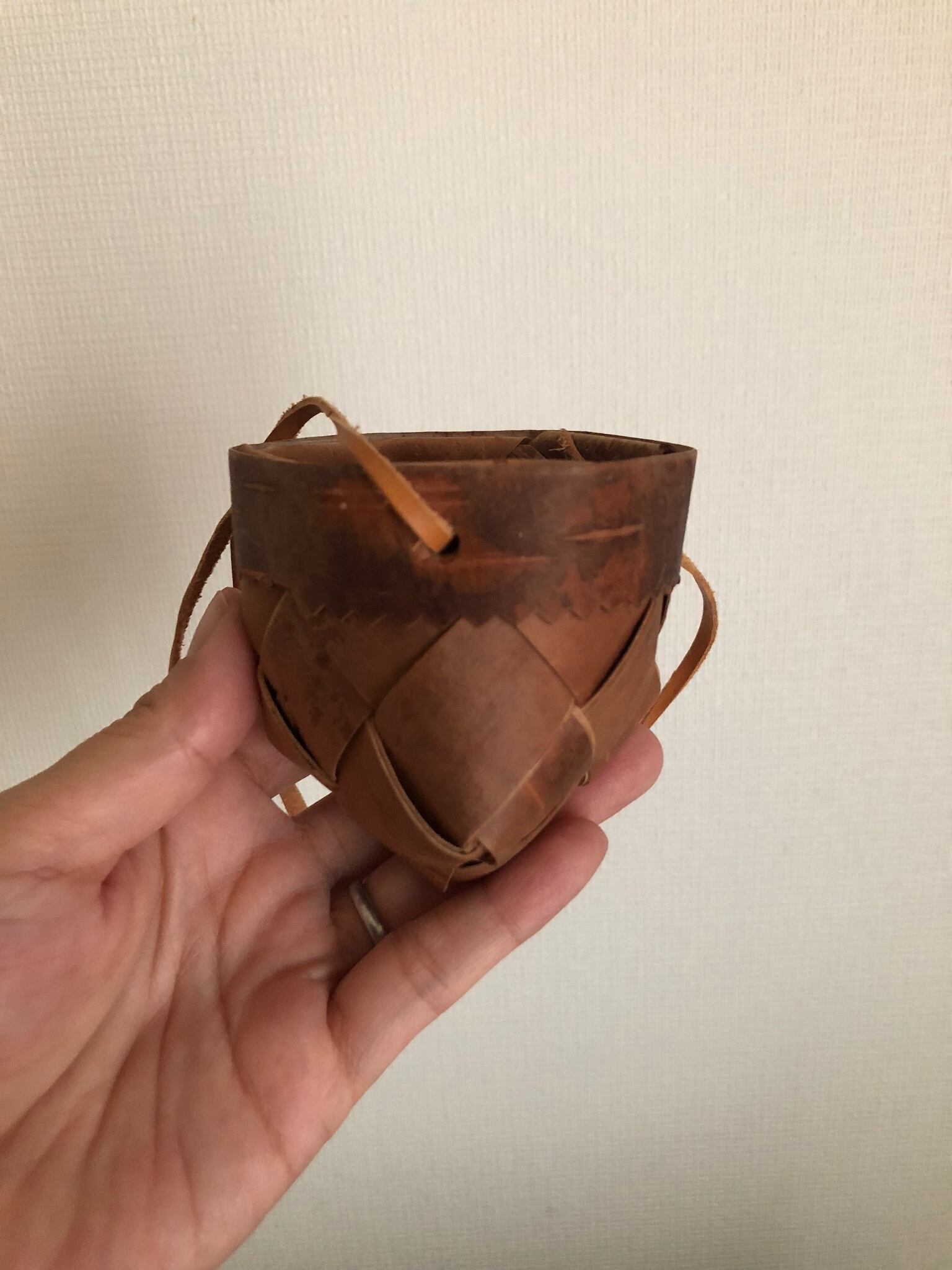 北欧 スウェーデン 白樺のレザーの紐付きプランターバスケット ヴィンテージ