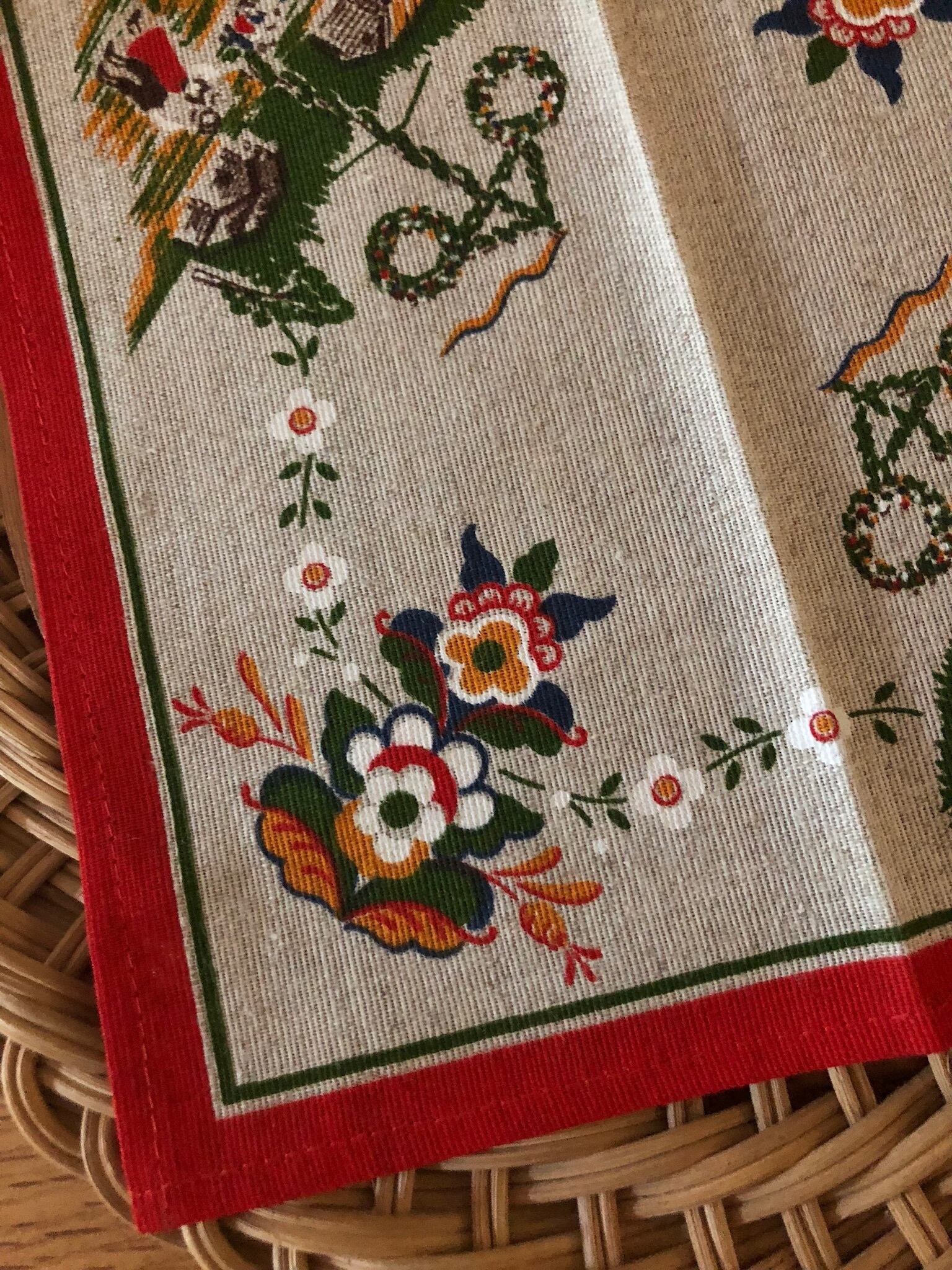 北欧 スウェーデン ハーフリネン プリントクロス ヴィンテージ