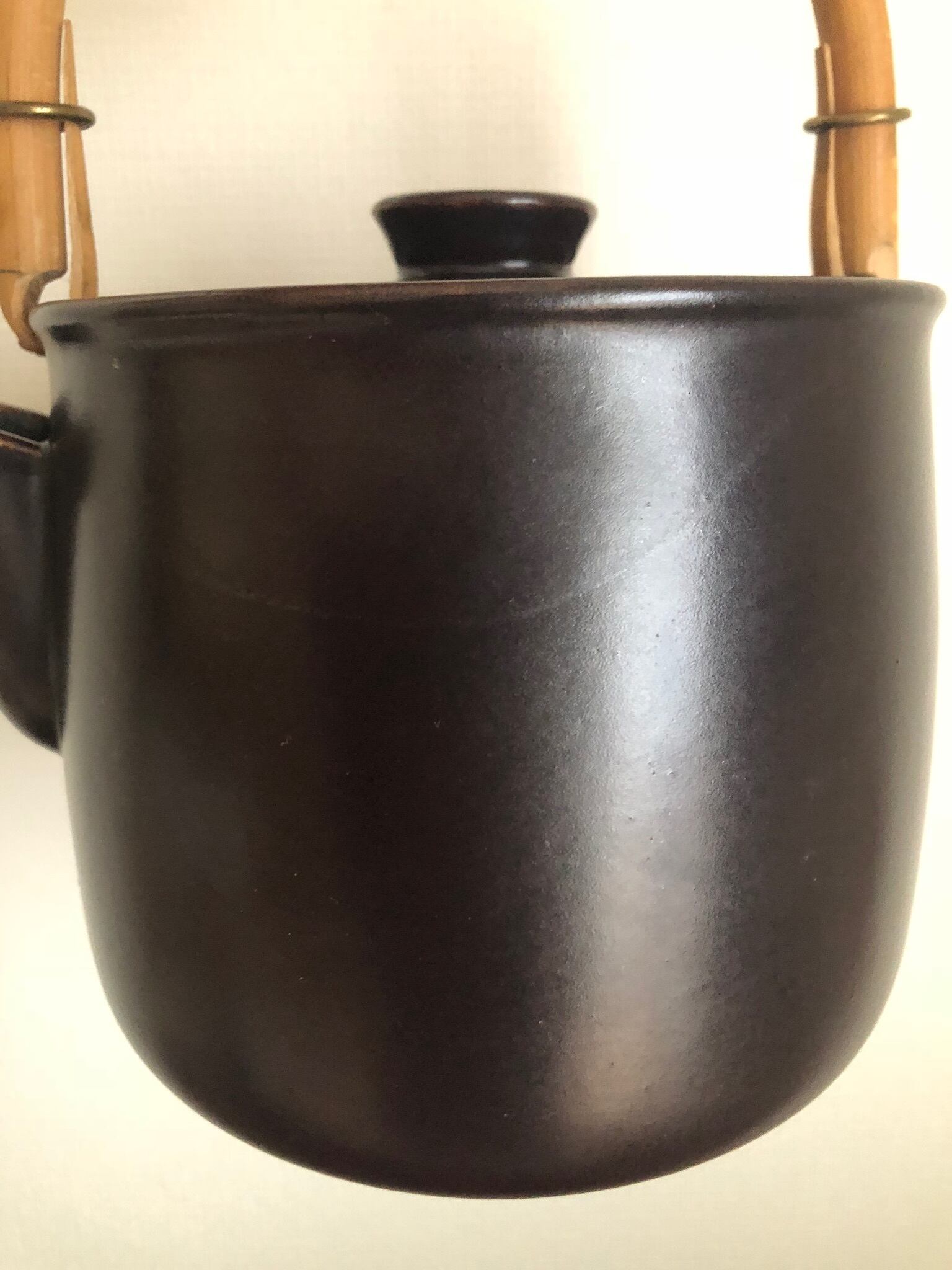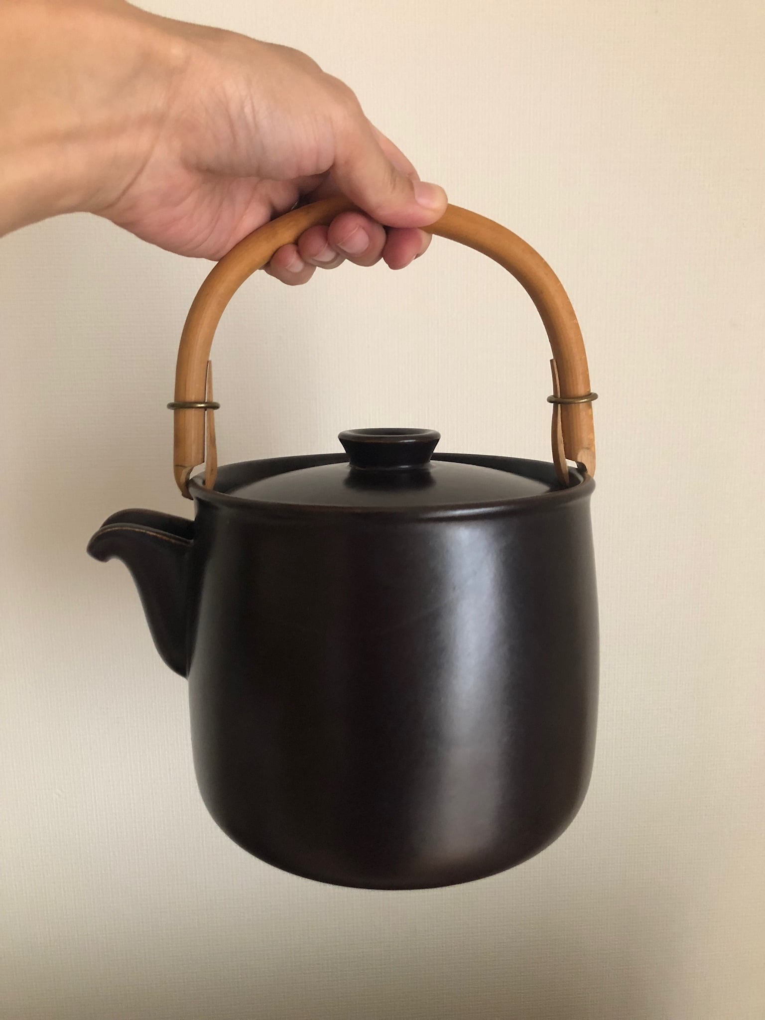 ポットは、さまざまな形が作られていますが、こちらは安定感のあるシンプルなデザインに、陶器と木の持ち手の組み合わせが素敵なポットです。