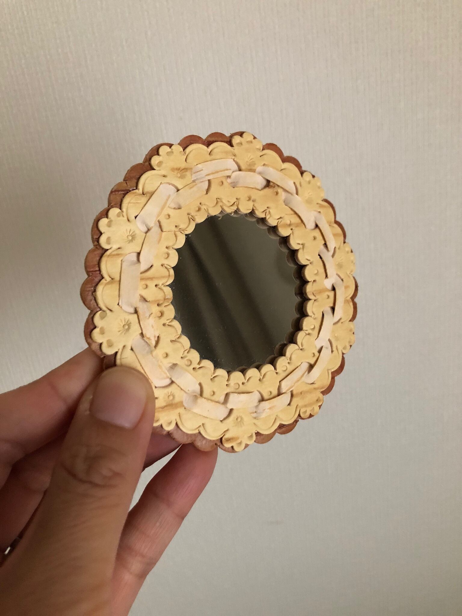 ロシアの白樺細工、ベレスタの多重細工のハンドミラーなります♫
