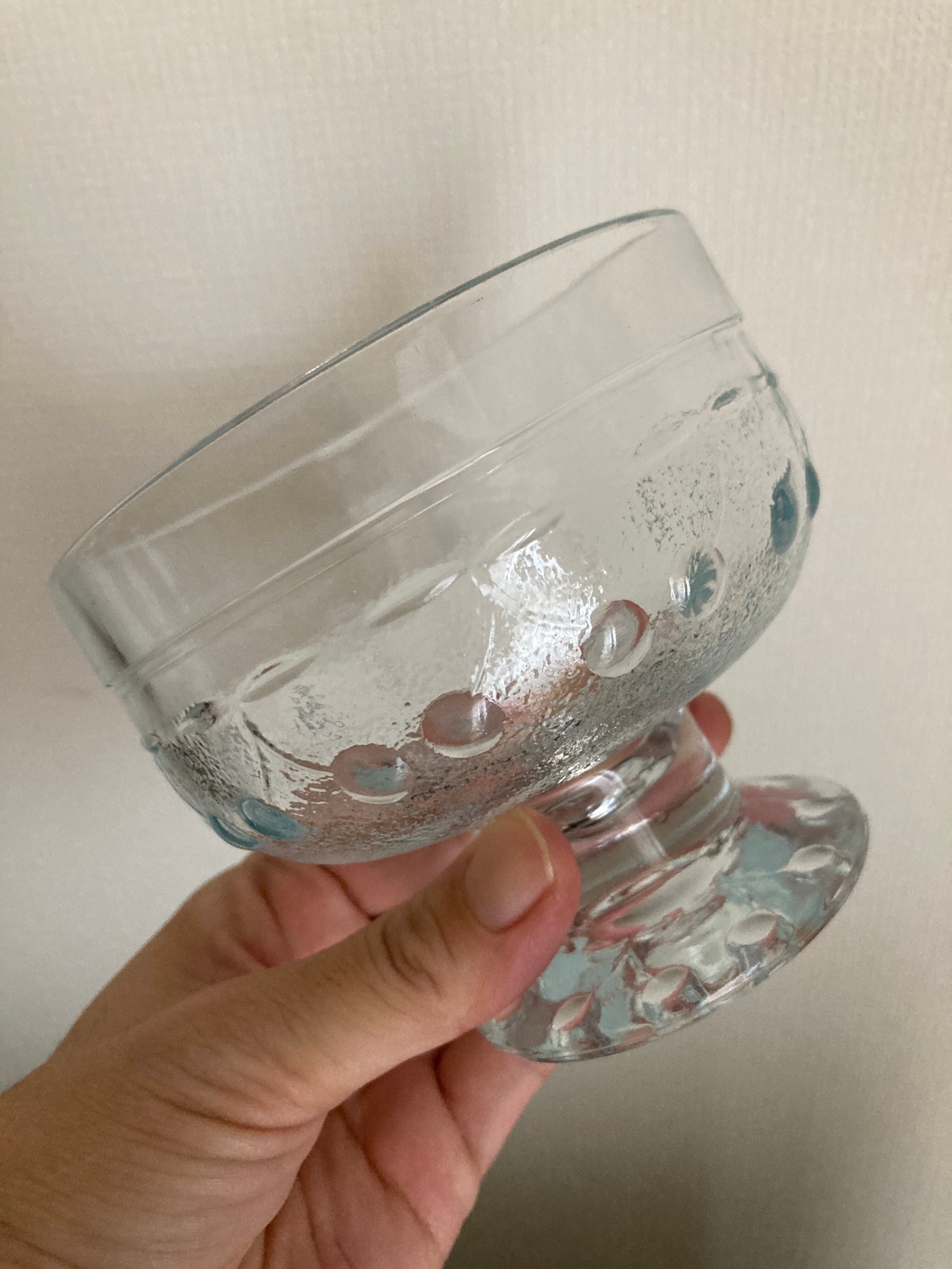 フィンランドのガラスメーカー、Riihimaen Lasi社の KIRSI キルシ シリーズのガラスの脚付きデザートボウルになります。