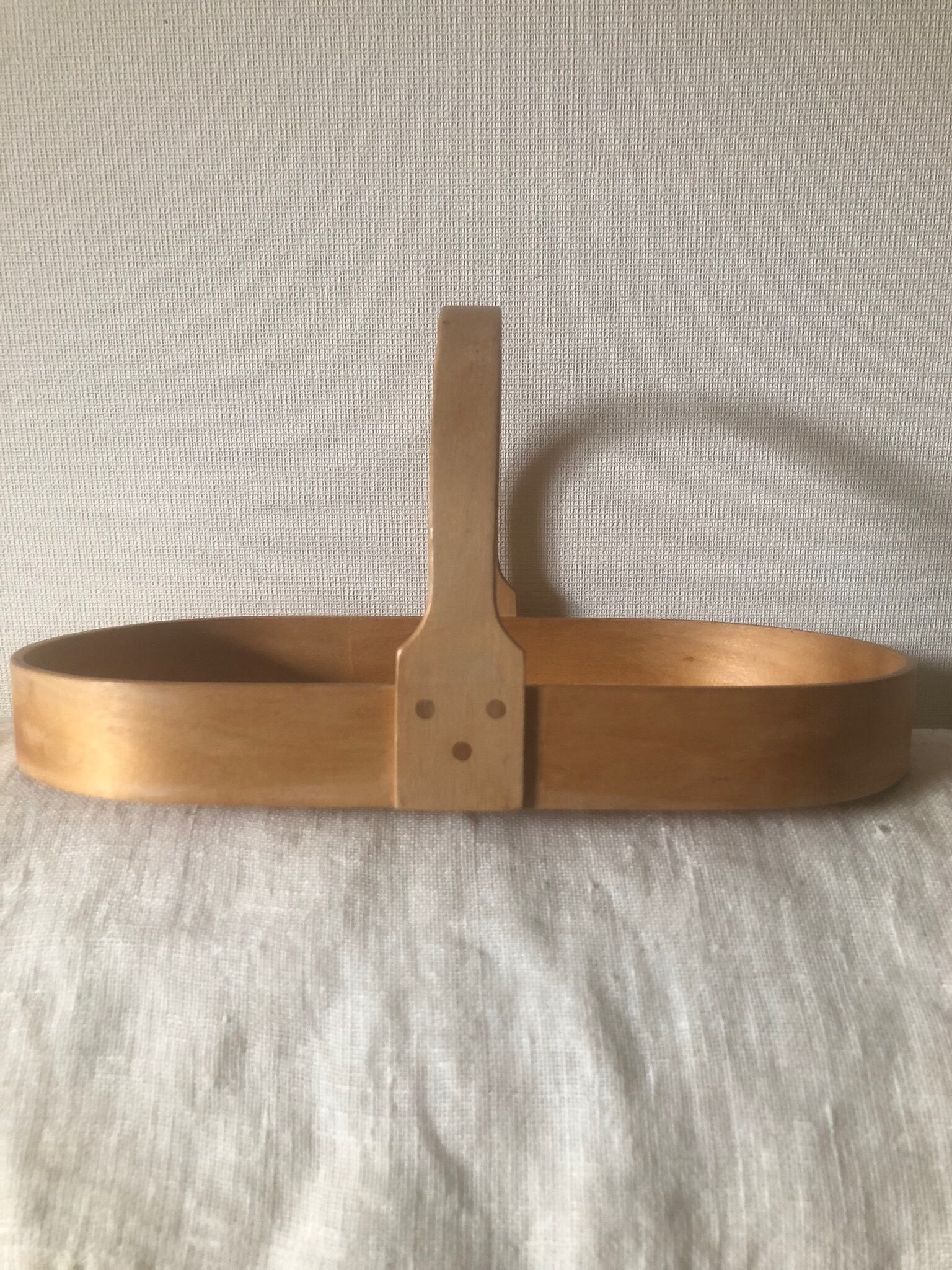 北欧 スウゥーデン 木のハンドル付きバスケット/トレイ ヴィンテージ