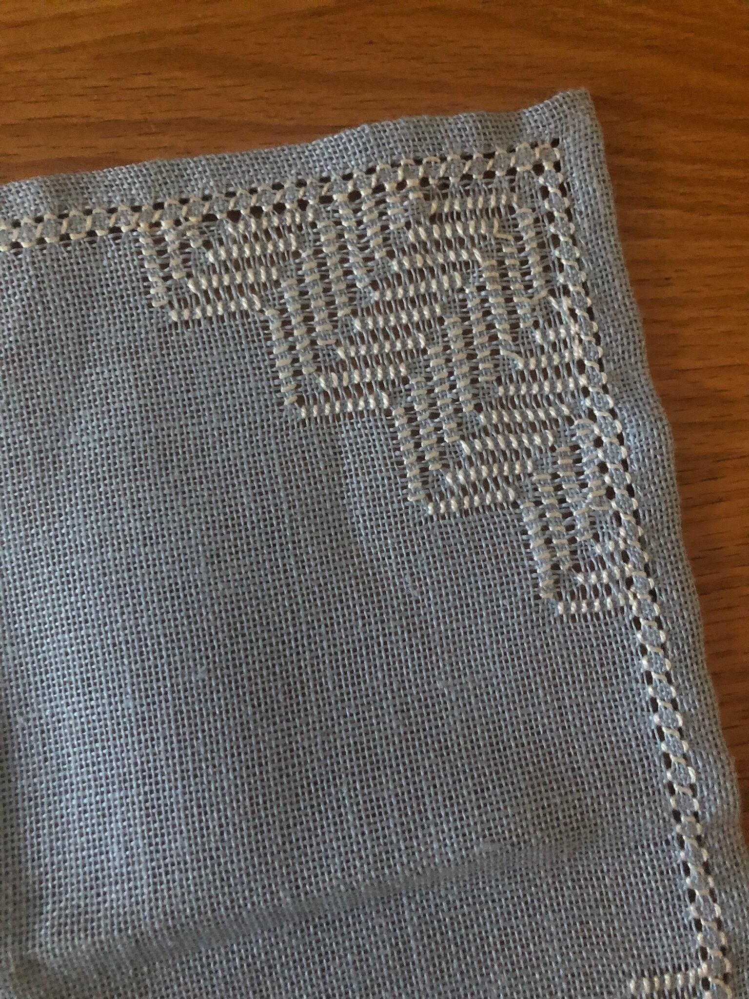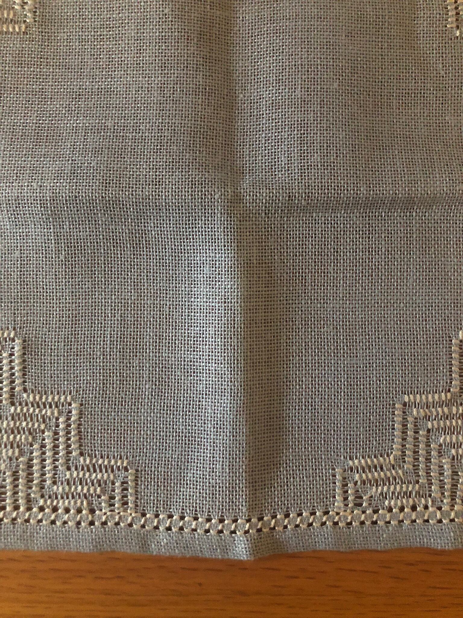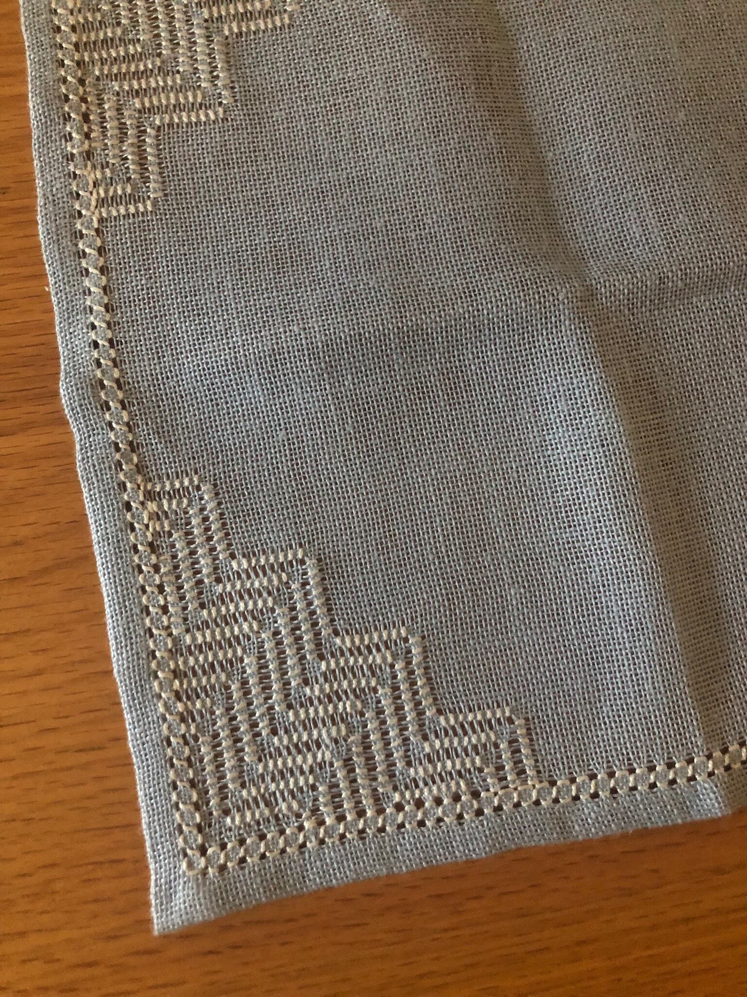 繊細なドロンワーク刺繍に、さらに白い刺繍が施された、とても凝った素敵なリネンクロス。