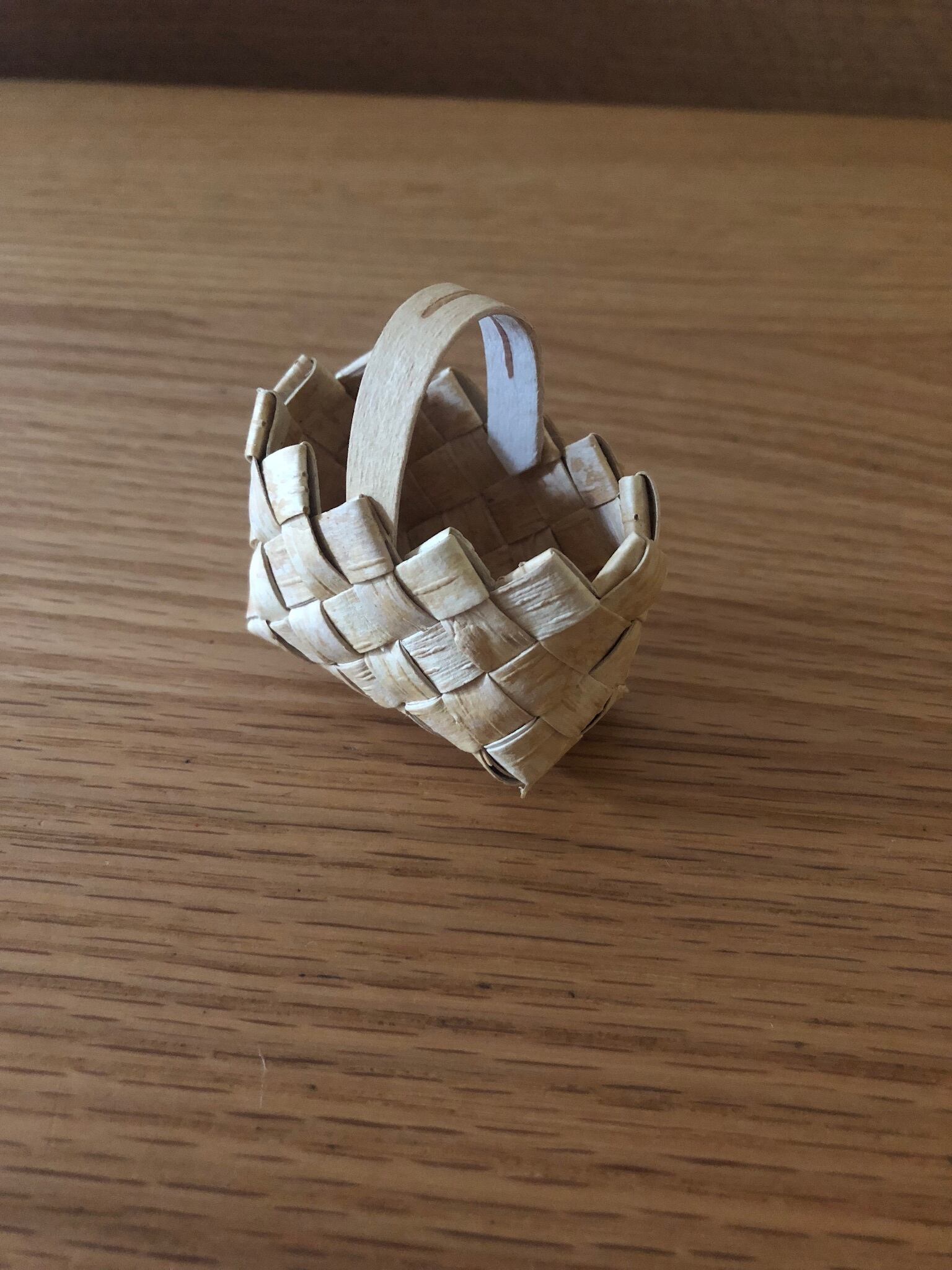 上のギザギザと、なにより手のひらに乗るミニチュアサイズが可愛らしい、白樺のバスケット♫