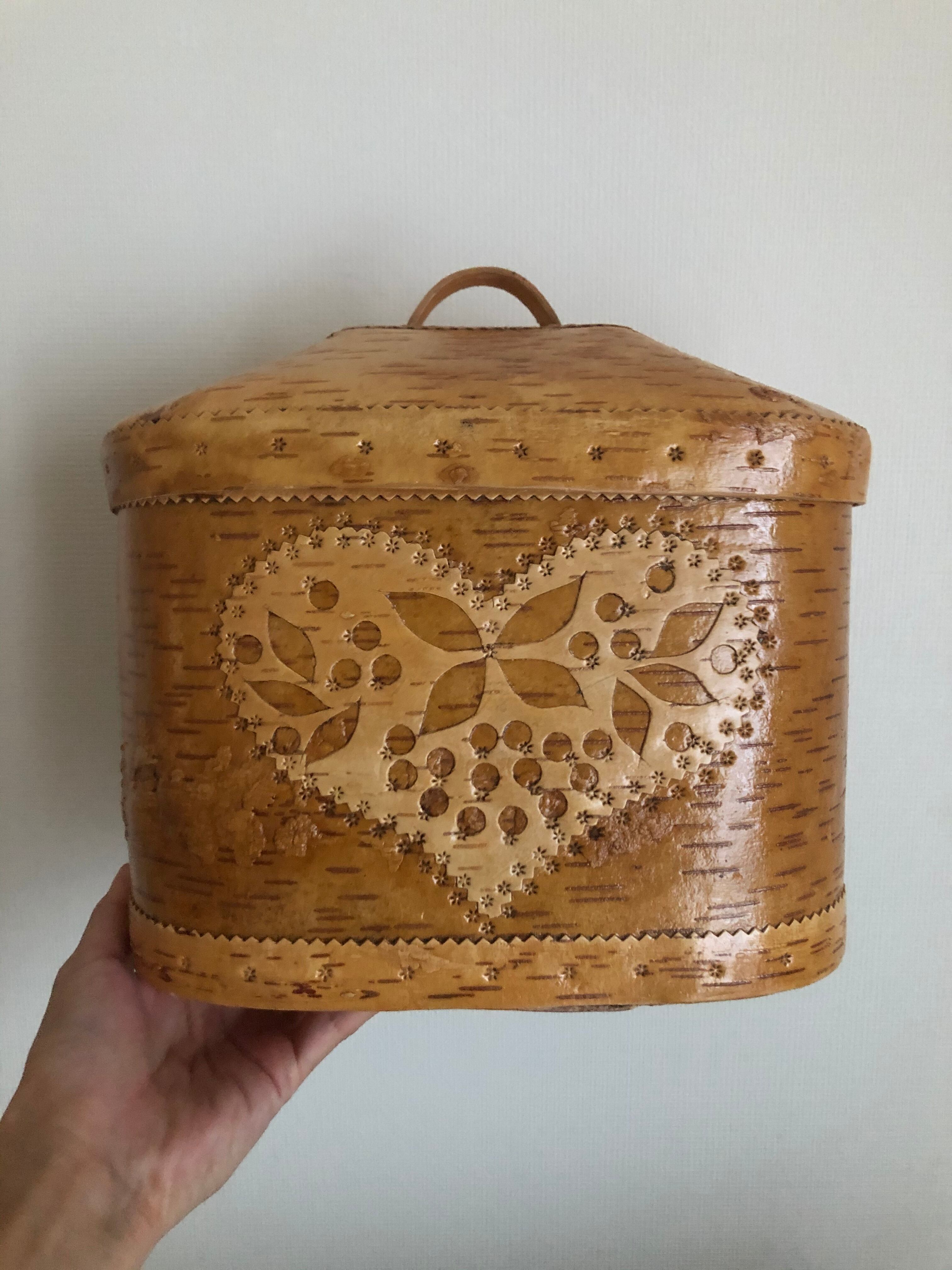 ロシア 白樺の蓋付き入れ物