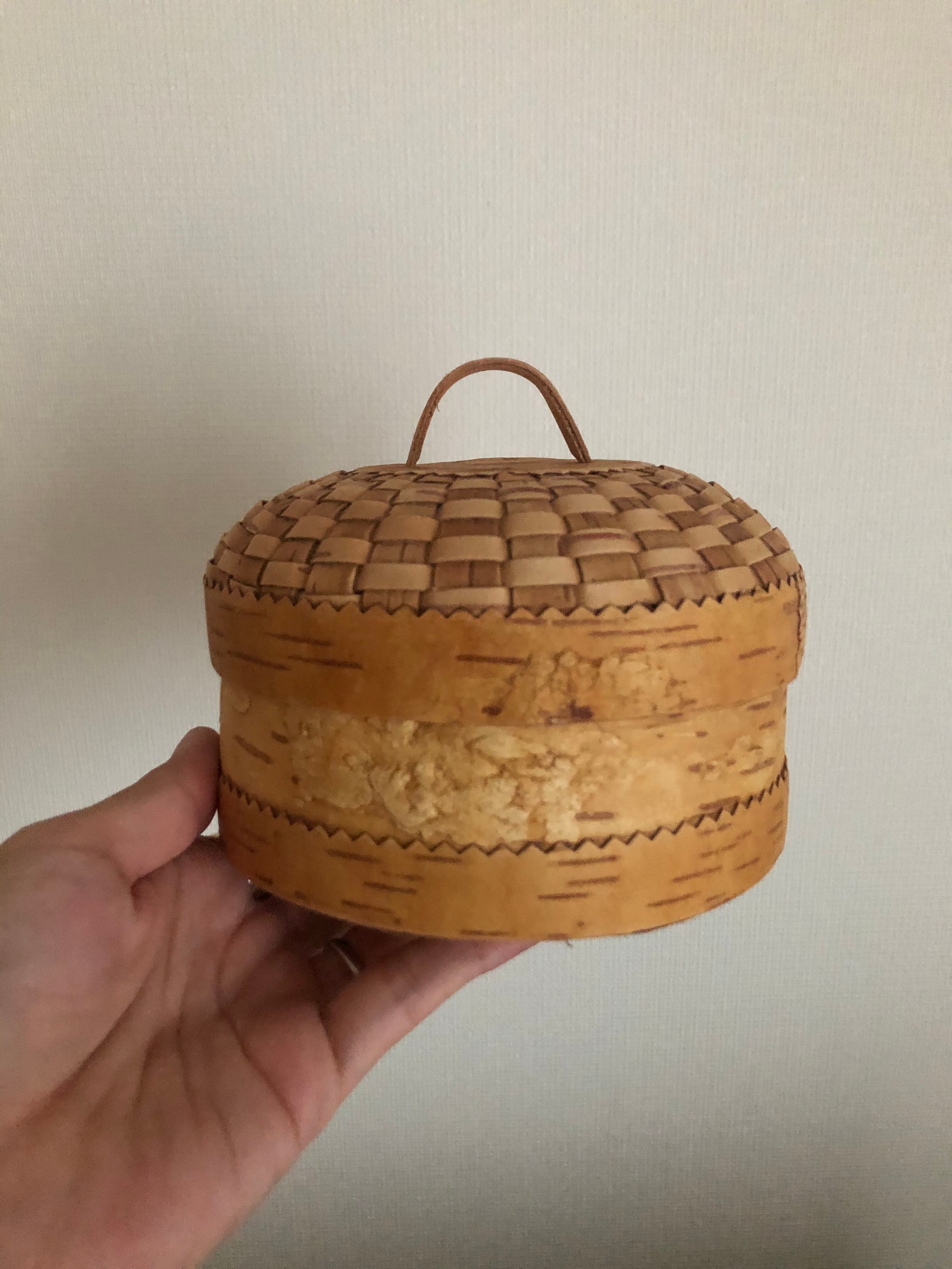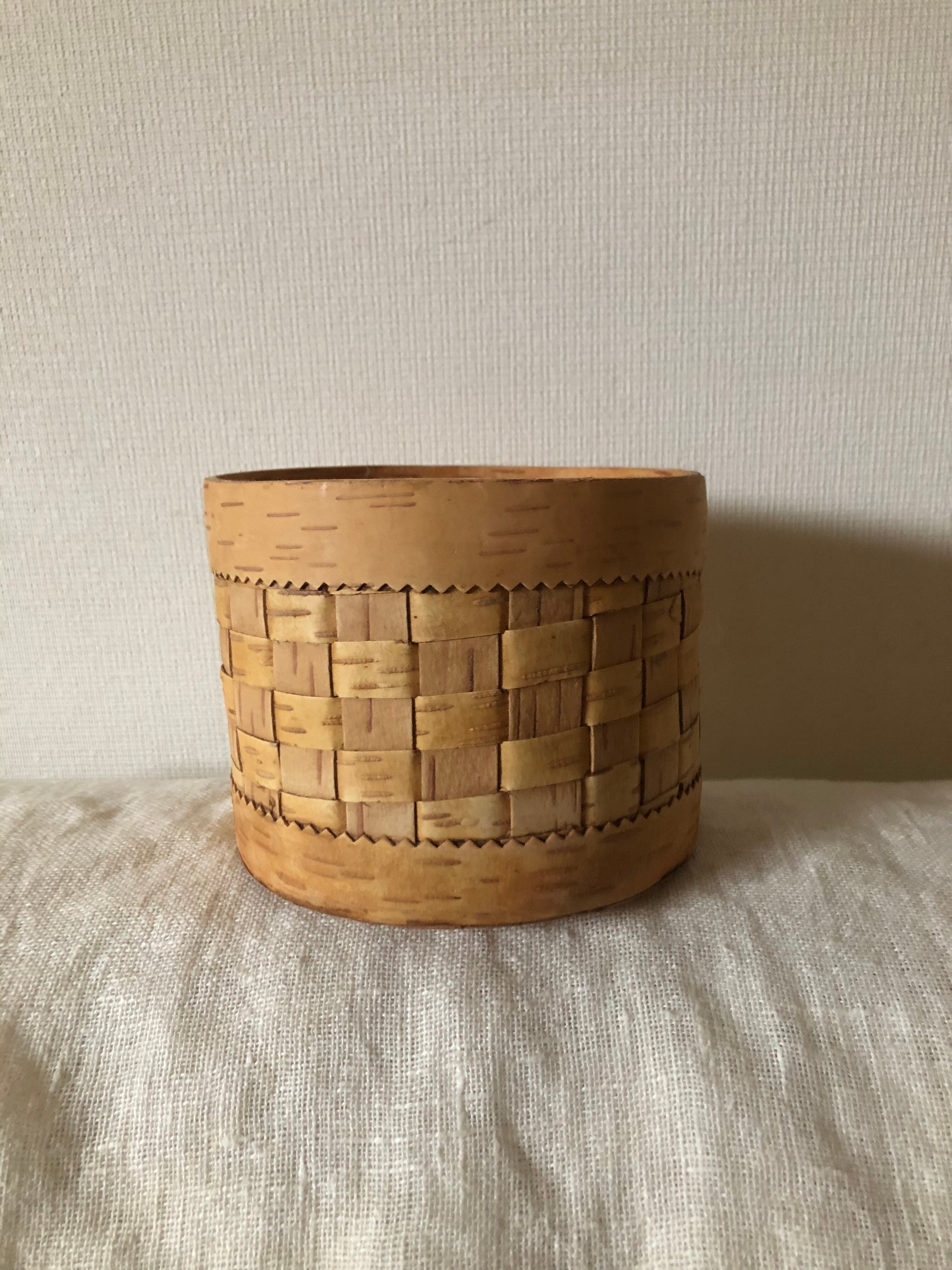 ロシア 白樺編みの丸い入れ物