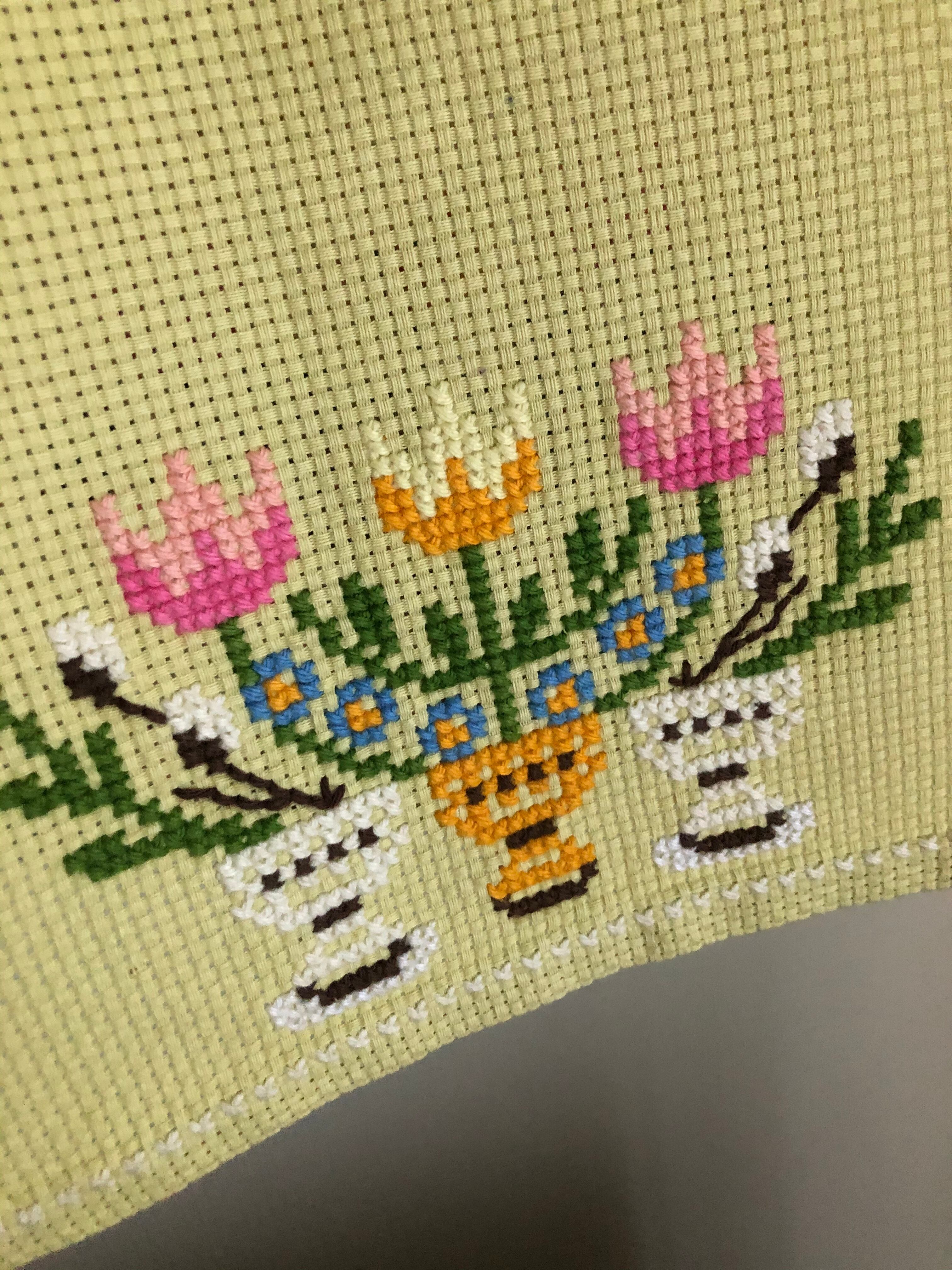 北欧 お花の刺繍ロングクロス ヴィンテージ