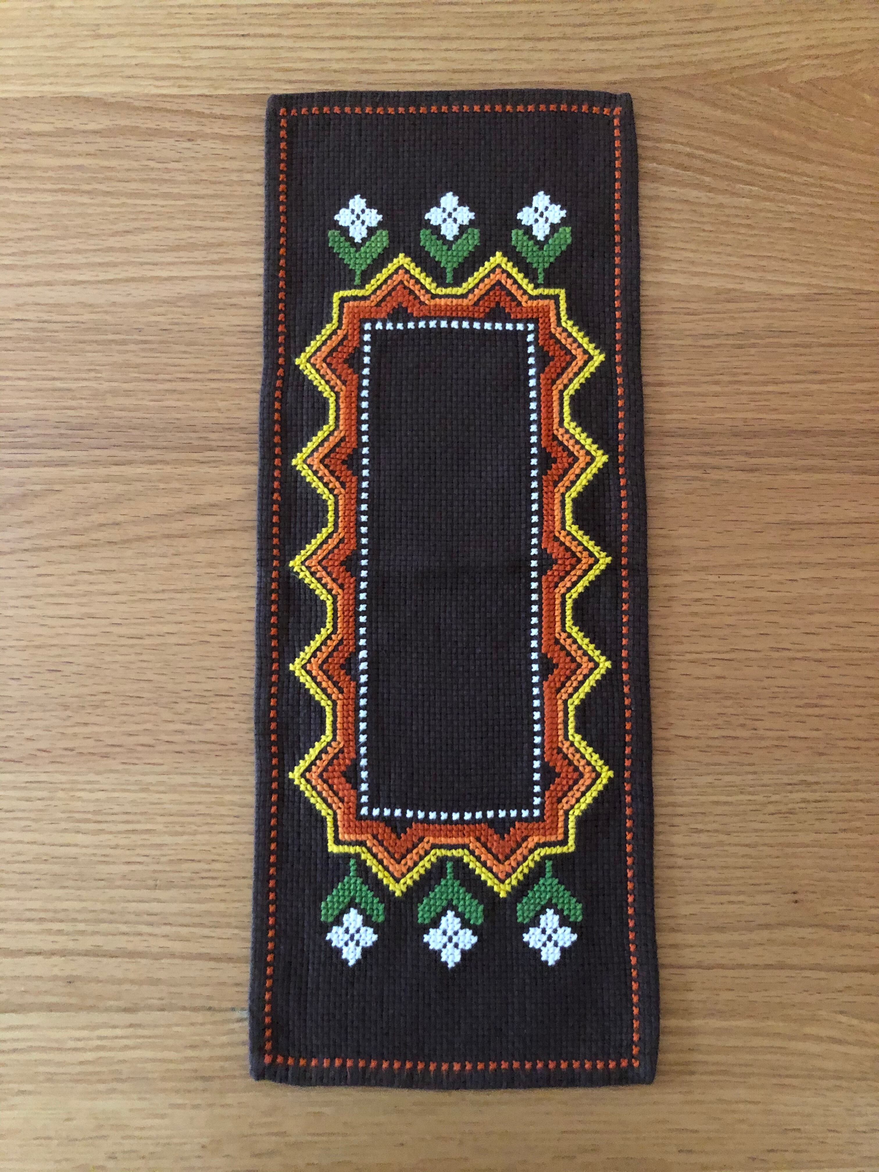 北欧 お花の刺繍ロングクロス ヴィンテージ