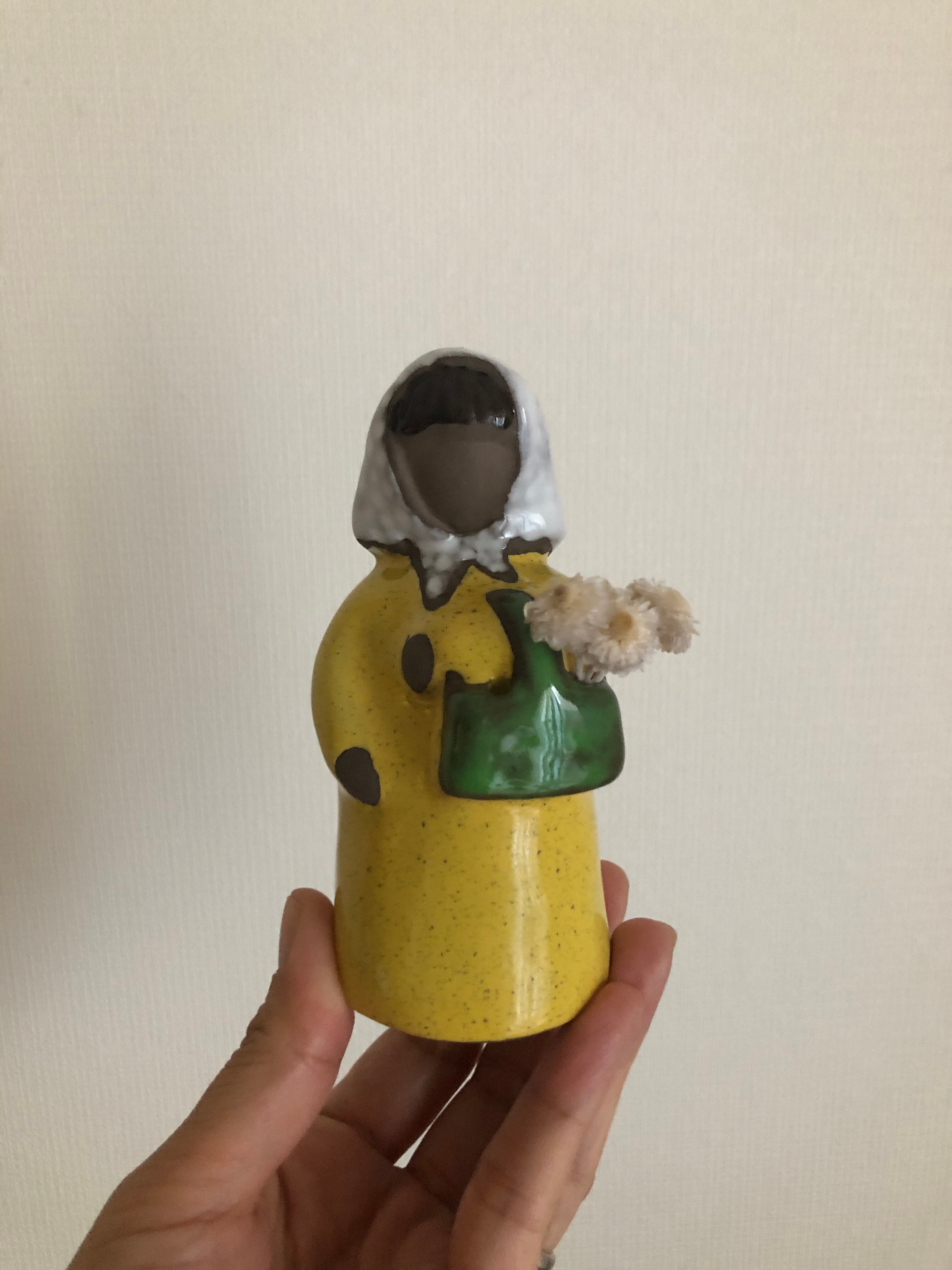 もともとこちらのスカーフの女の子のシリーズは下が空洞に空いているので、お花を挿す際はドライフラワーかフェイクフラワーにして下さいね。
