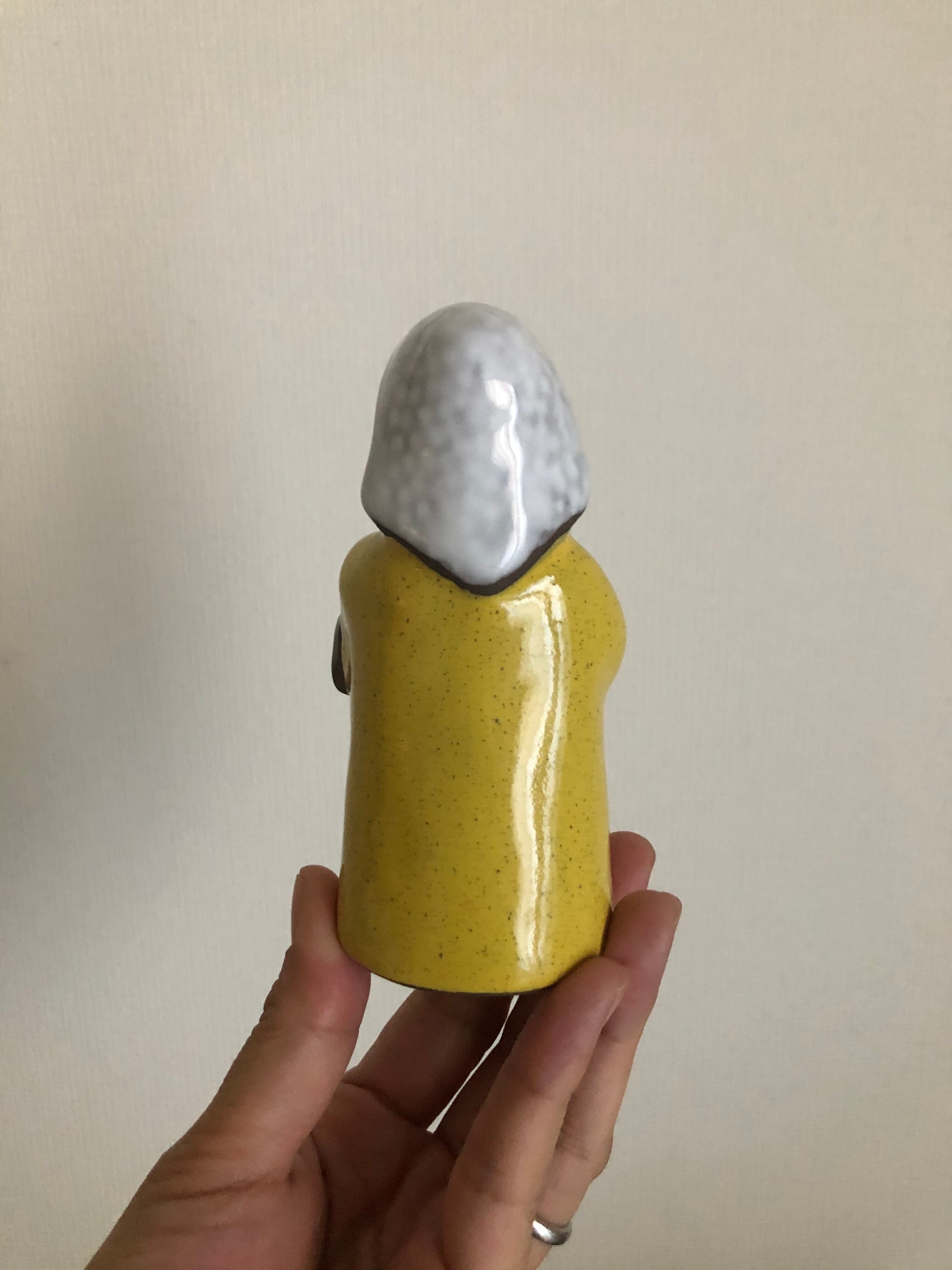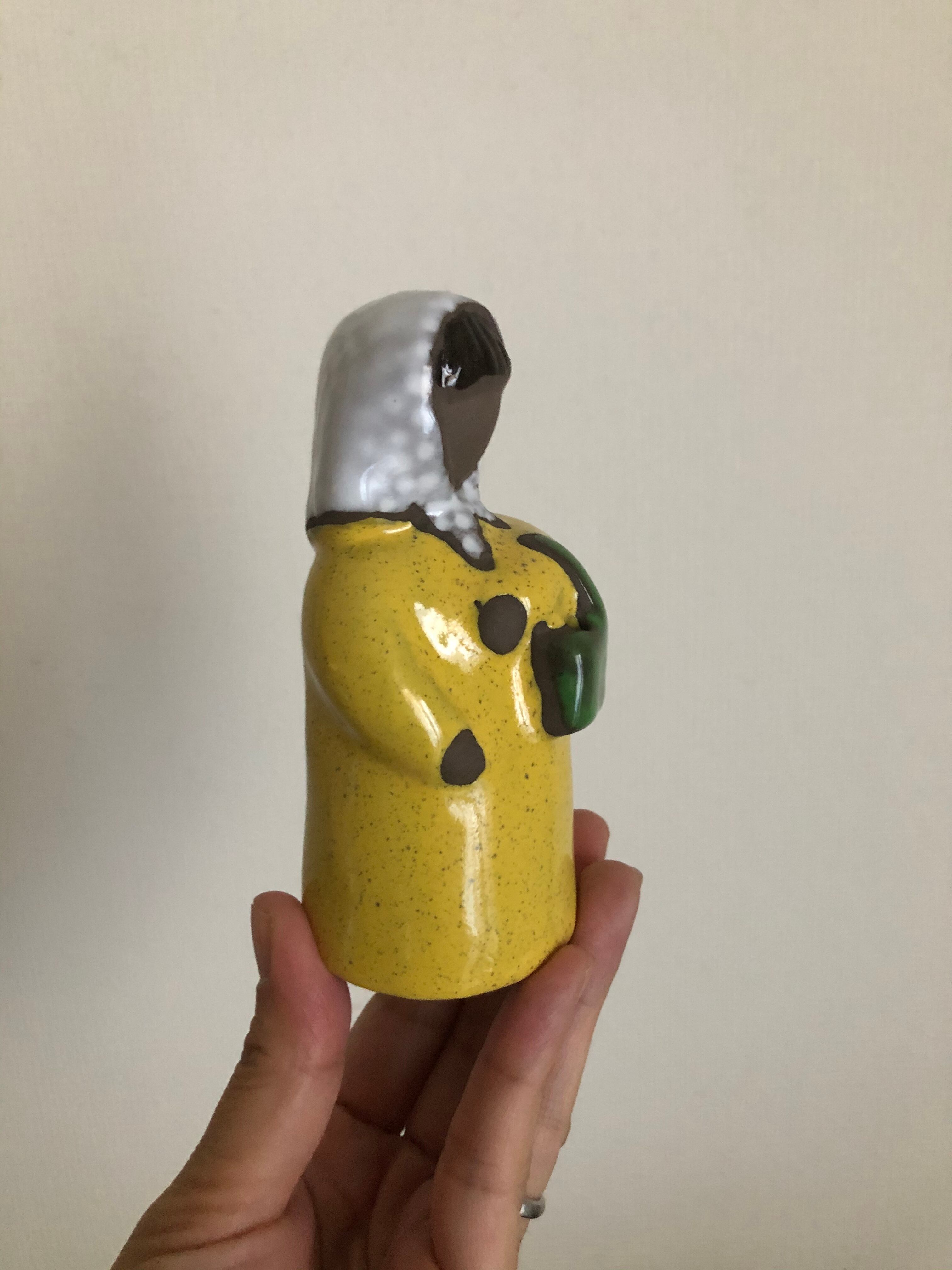 艶やかな黄色の洋服とスカーフ、顔と手の素焼きの組み合わせが素朴で可愛らしい一品。jieのフラワーガールの中でも、珍しいデザインの女の子です♫