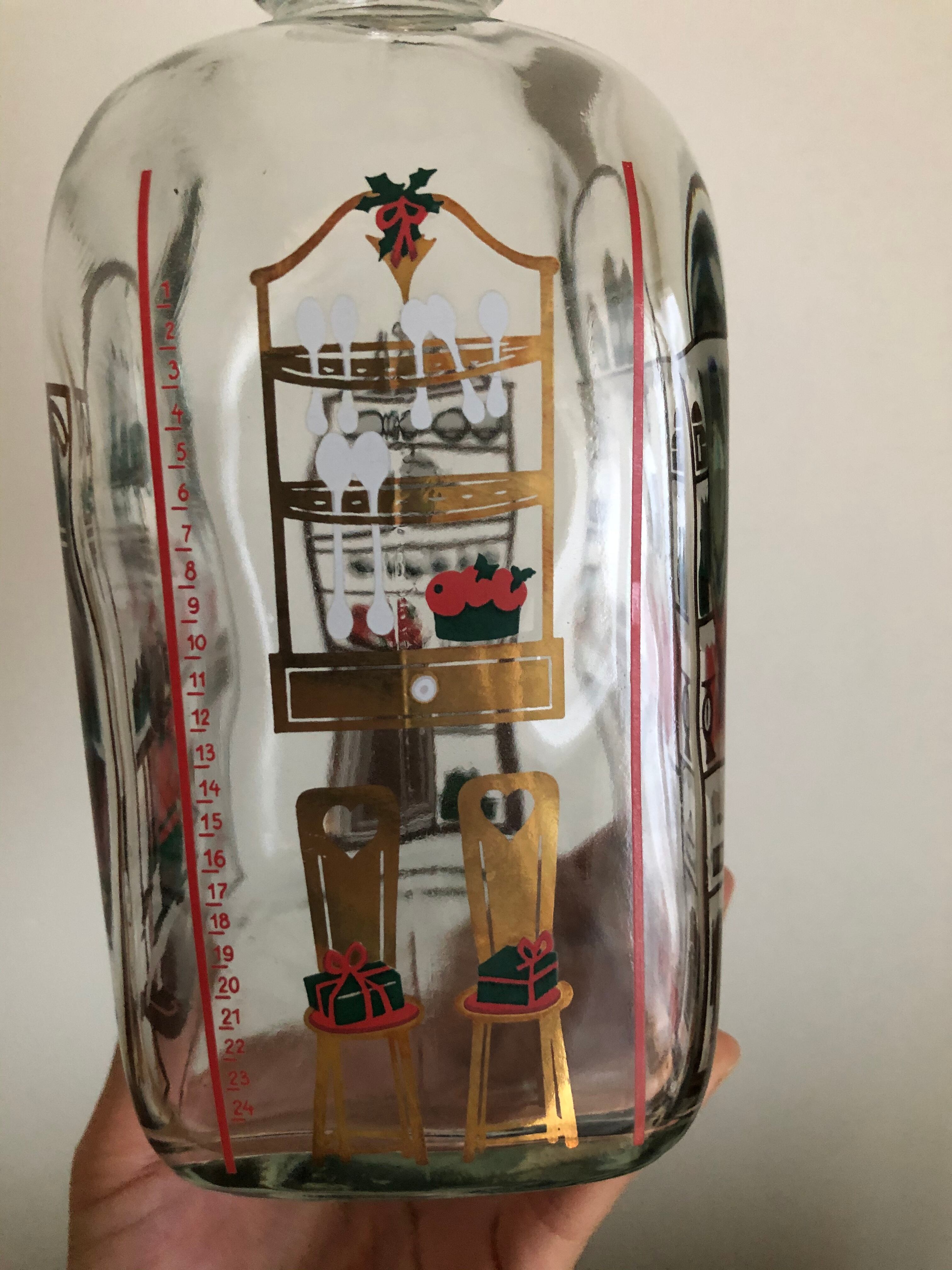 サイドには1-24まで目盛りが書いてあり、クリスマスまで、毎日、1目盛りずつお酒を飲み、クリスマスまでを楽しみながら過ごす、大人版のアドベントカレンダーです♫