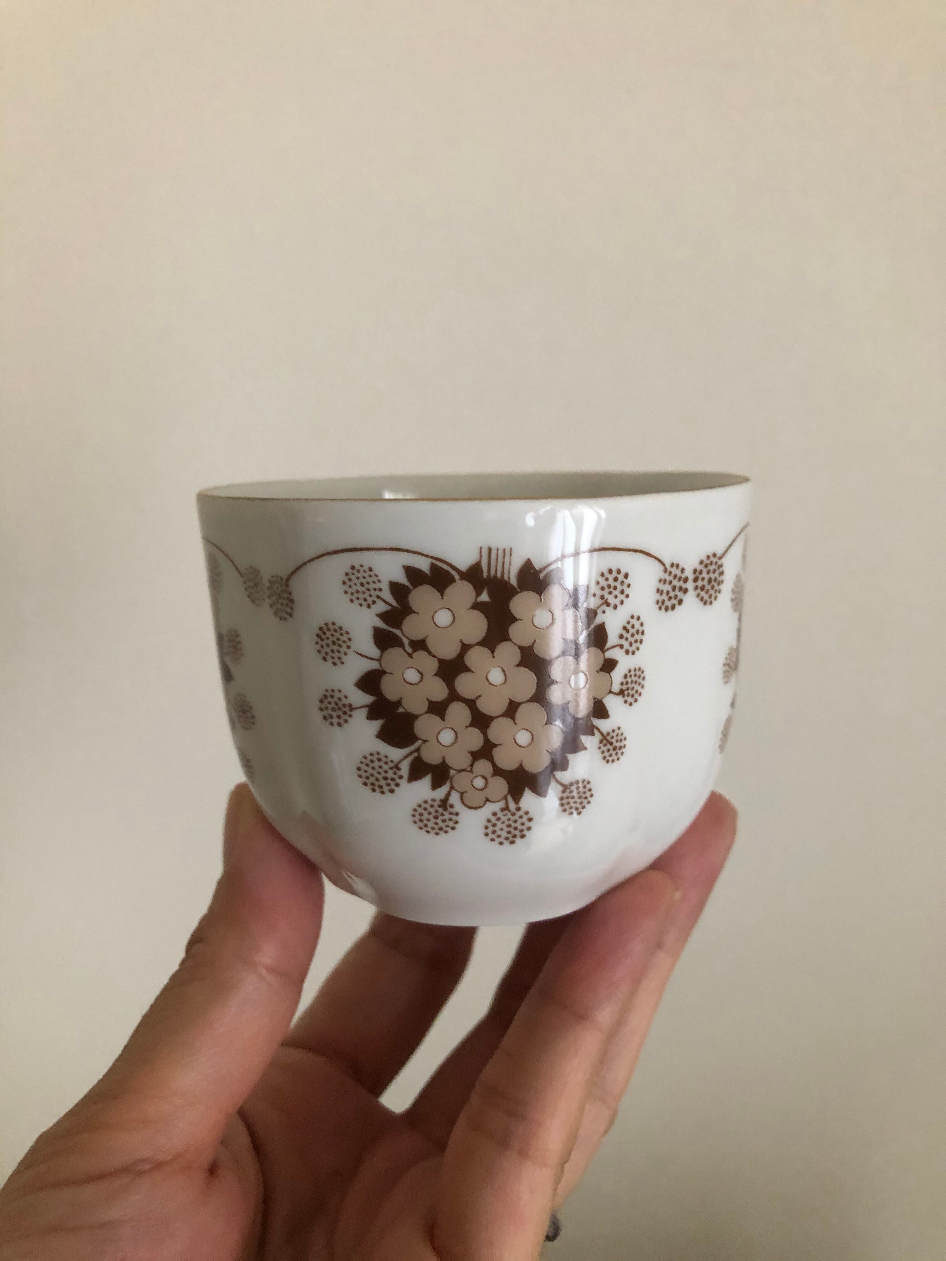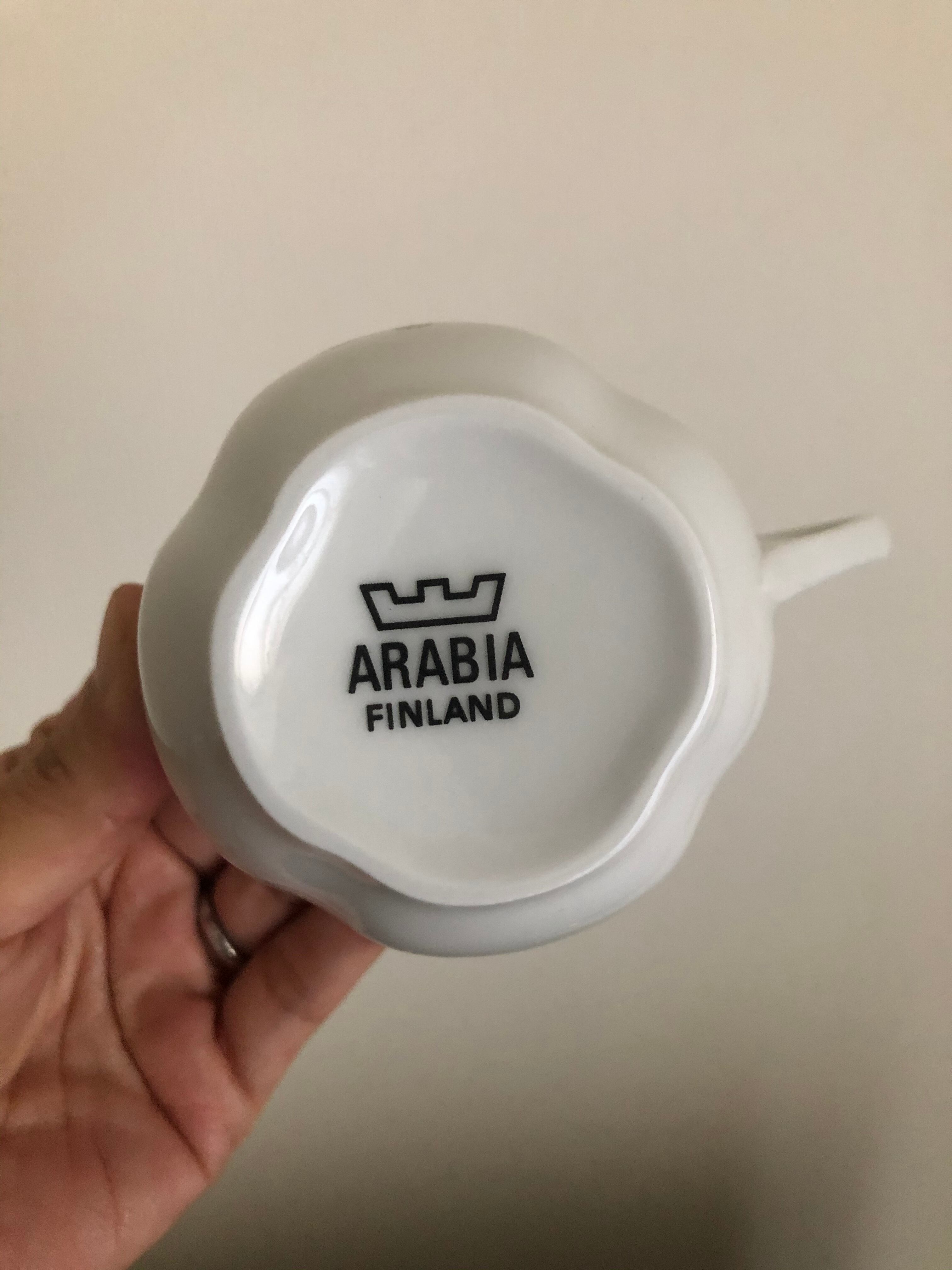 フィンランドのARABIA 社の LOVIISA(ロヴィーサ)シリーズのヴィンテージのティーカップ&ソーサー、ケーキプレートのトリオのセットになります。
