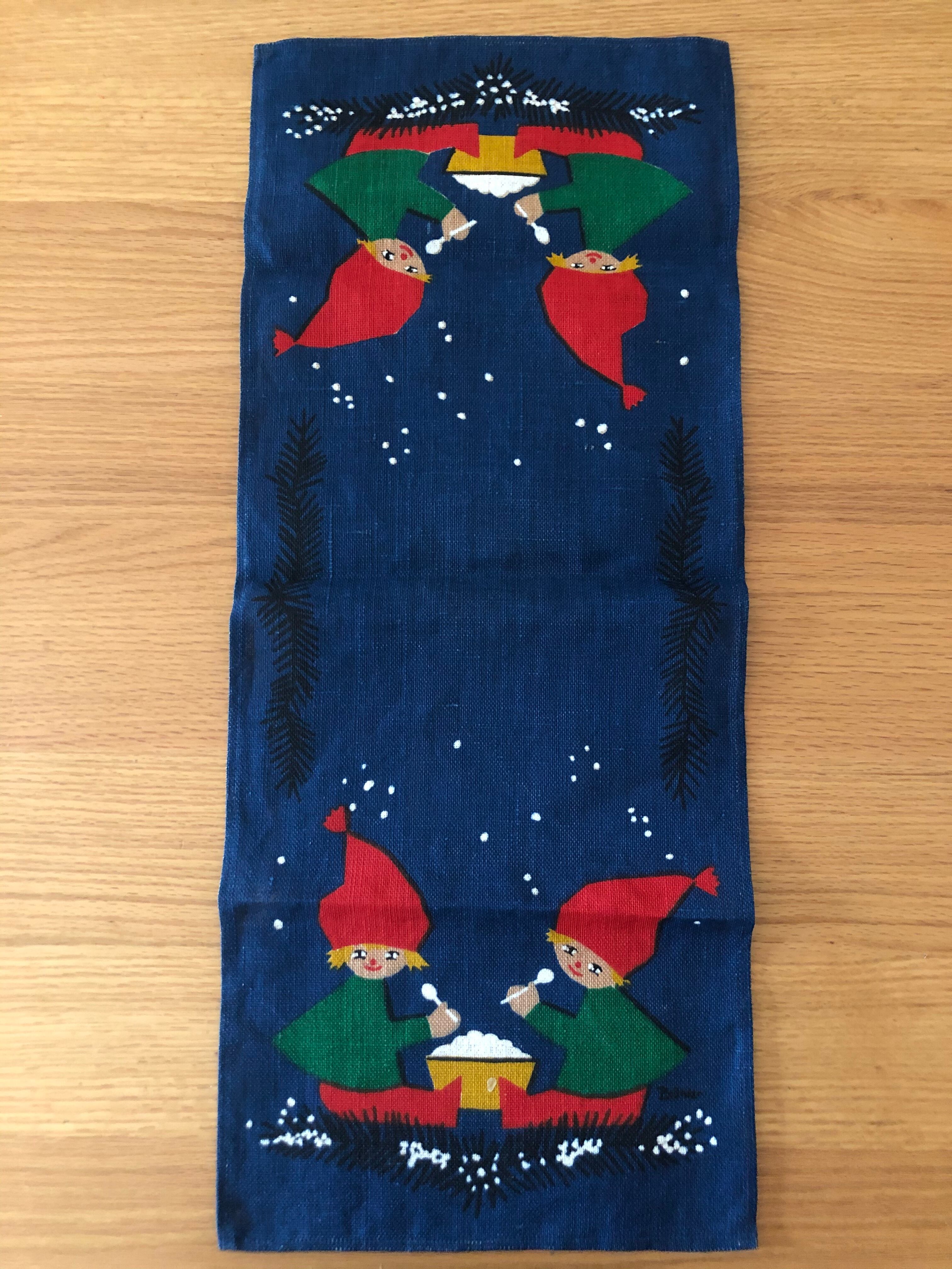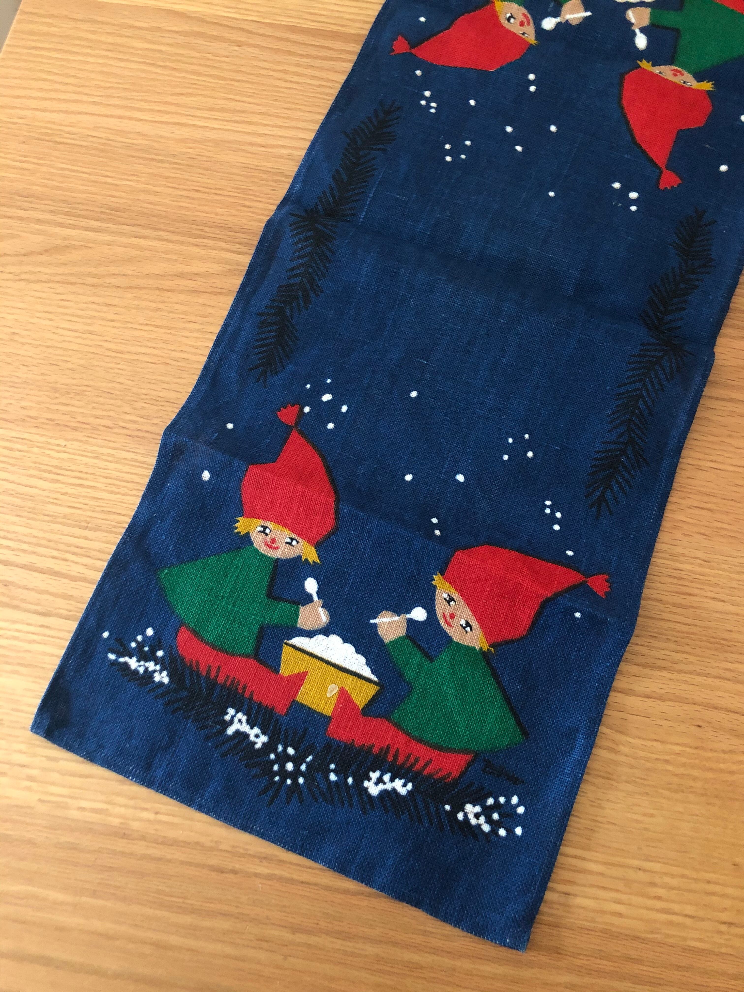 北欧 トムテプリントのリネンロングクロス ヴィンテージ