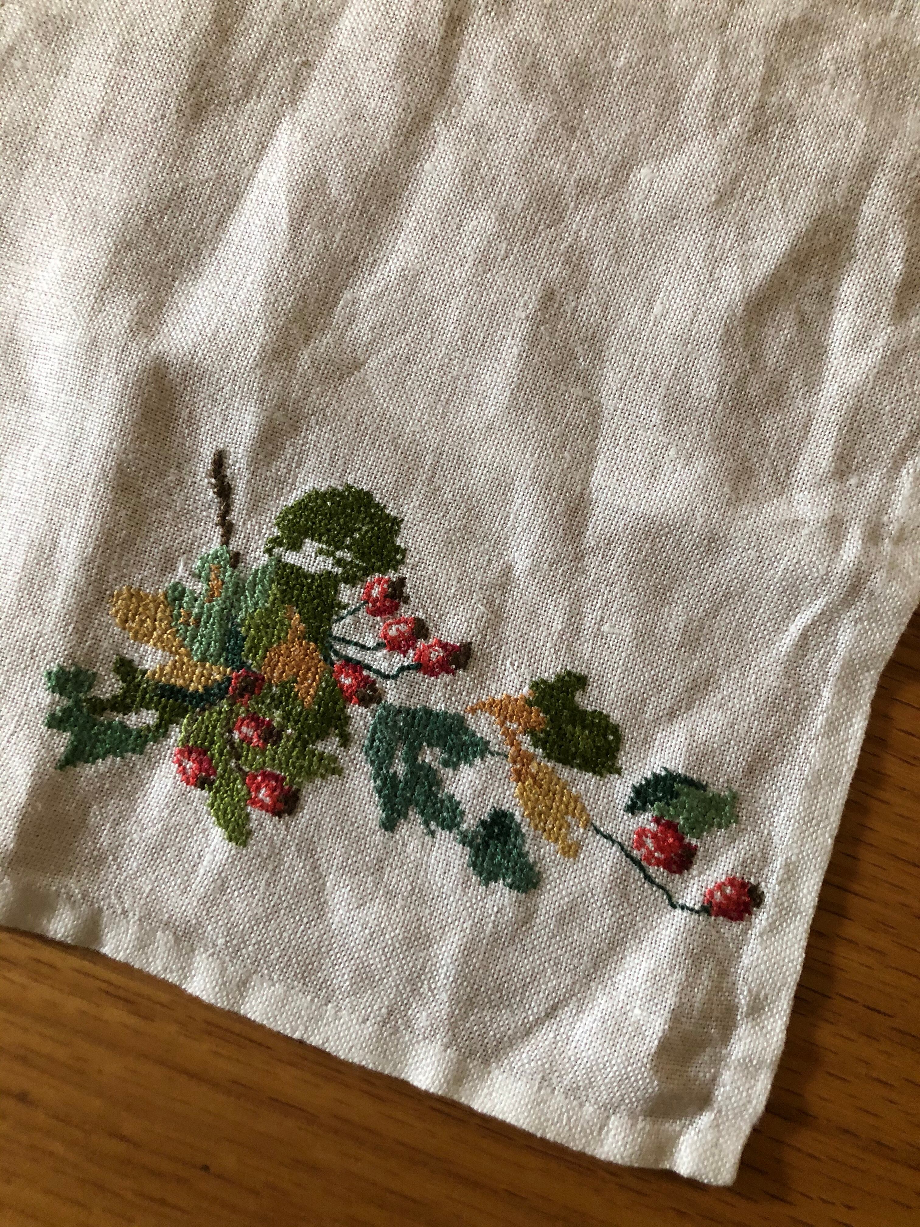 北欧 ベリー刺繍リネンクロス ヴィンテージ
