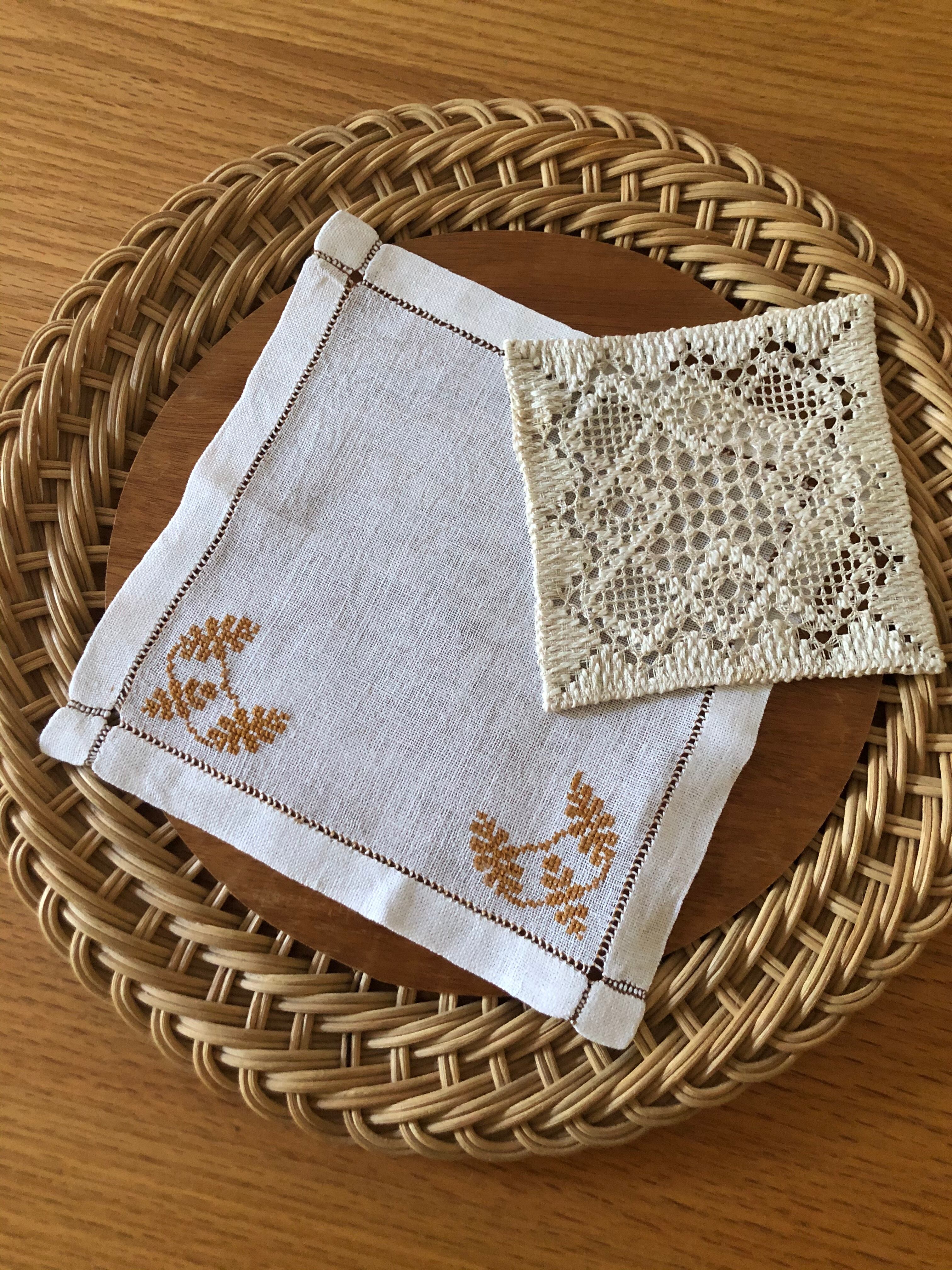 繊細な透かし模様が素敵なリネンレースドイリーです。