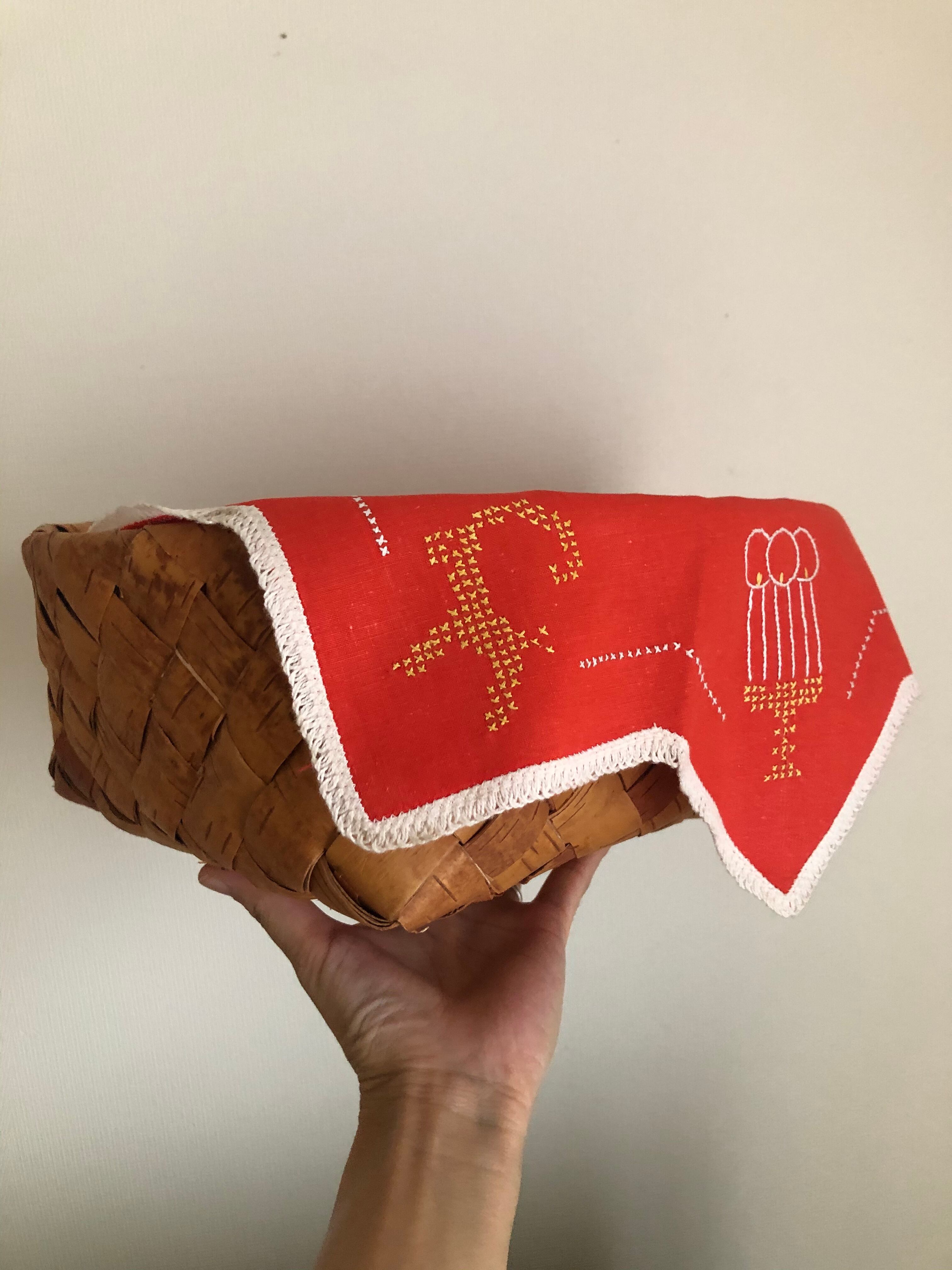 北欧 トナカイと燭台の刺繍 星形クロス ヴィンテージ