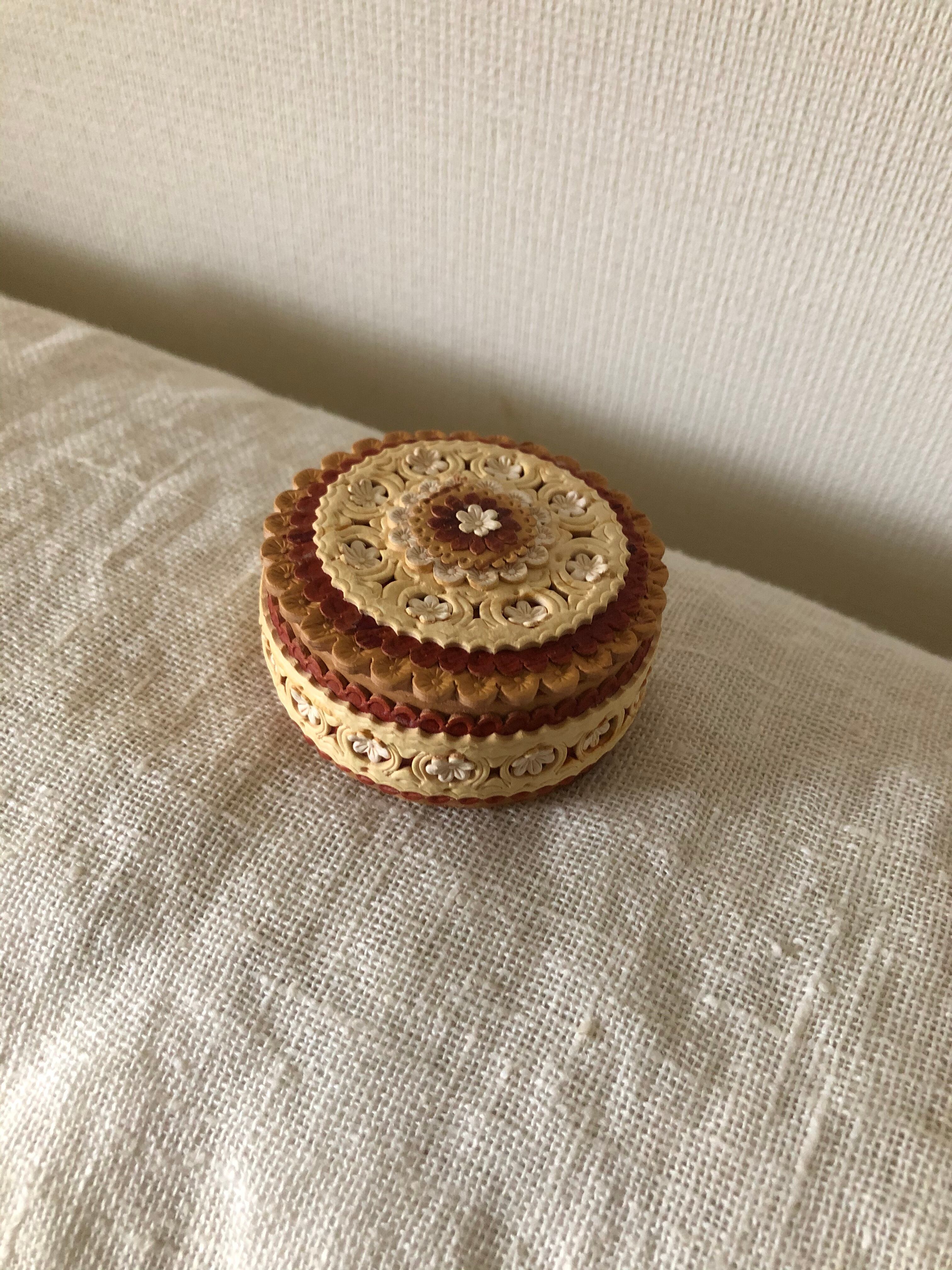 ロシアの白樺細工、ベレスタの多重柄のキャニスター