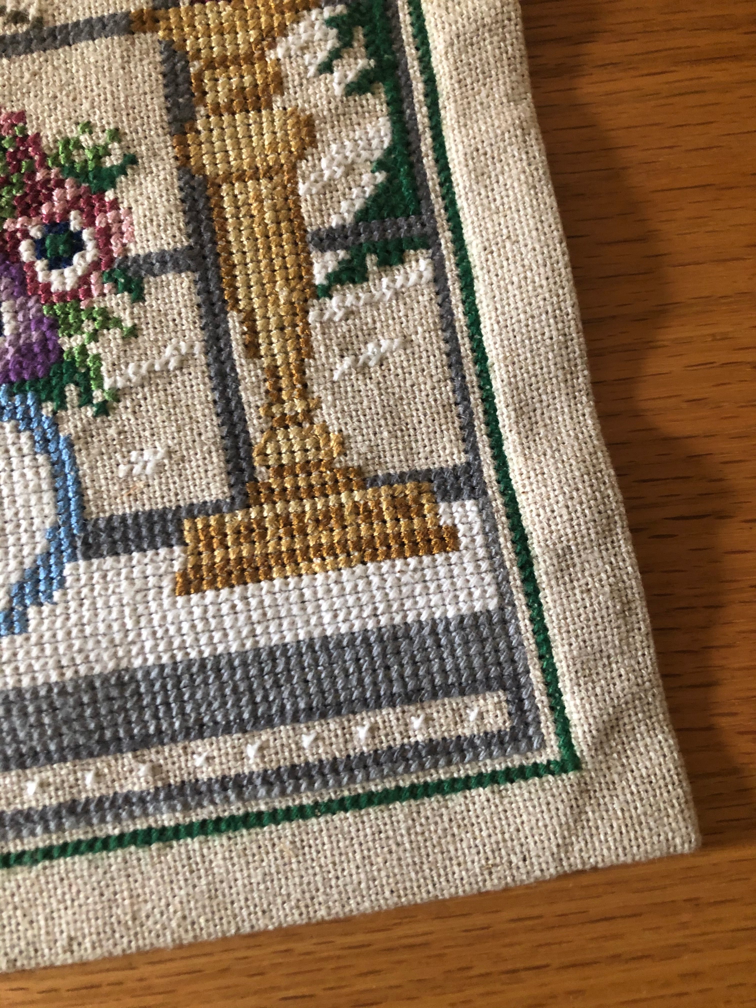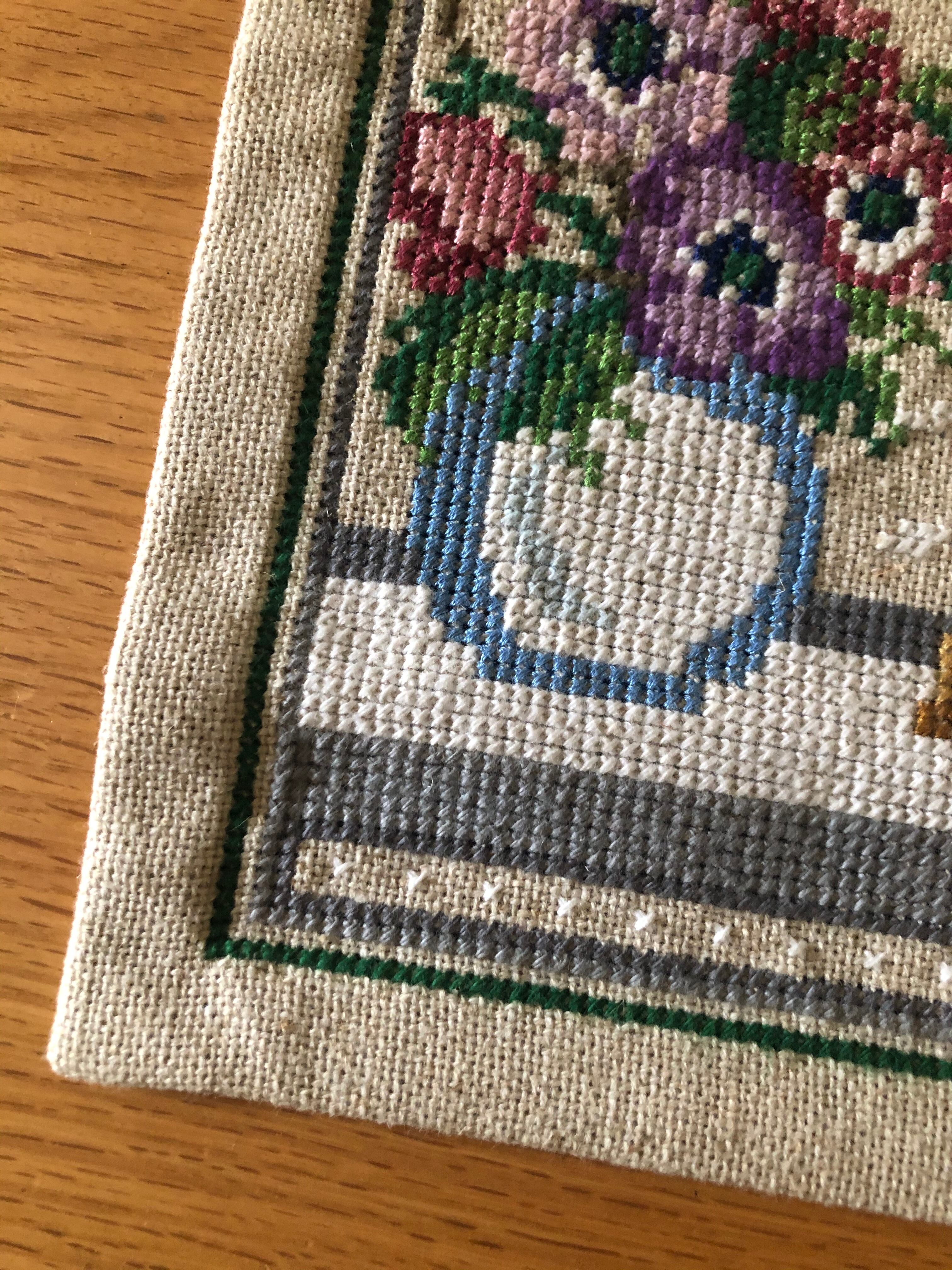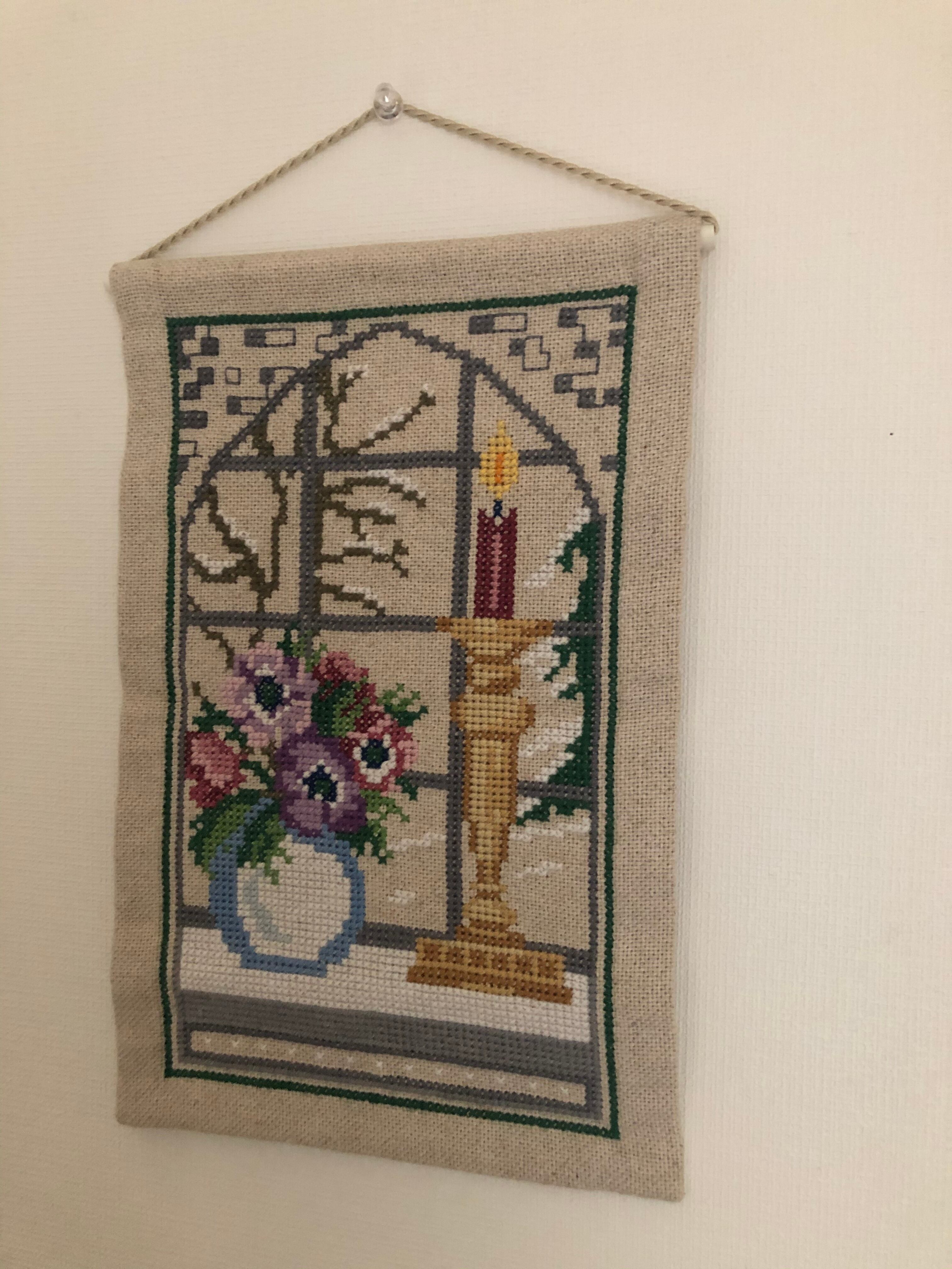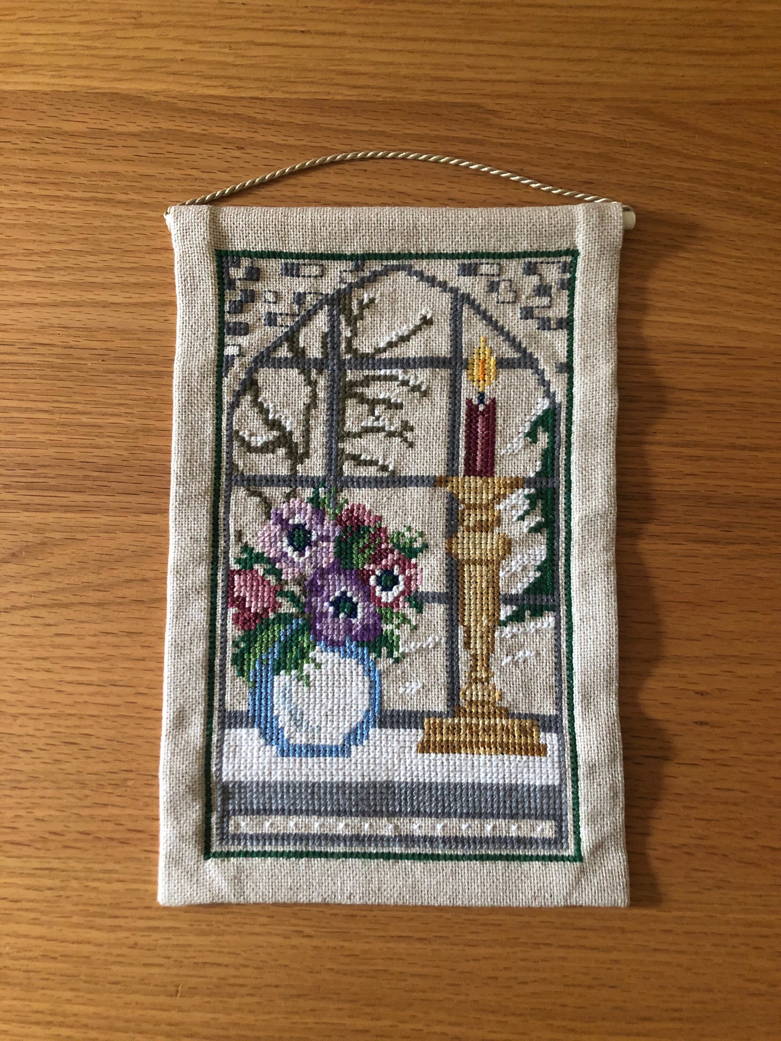 北欧 キャンドルと花瓶とお花刺繍タペストリー ヴィンテージ