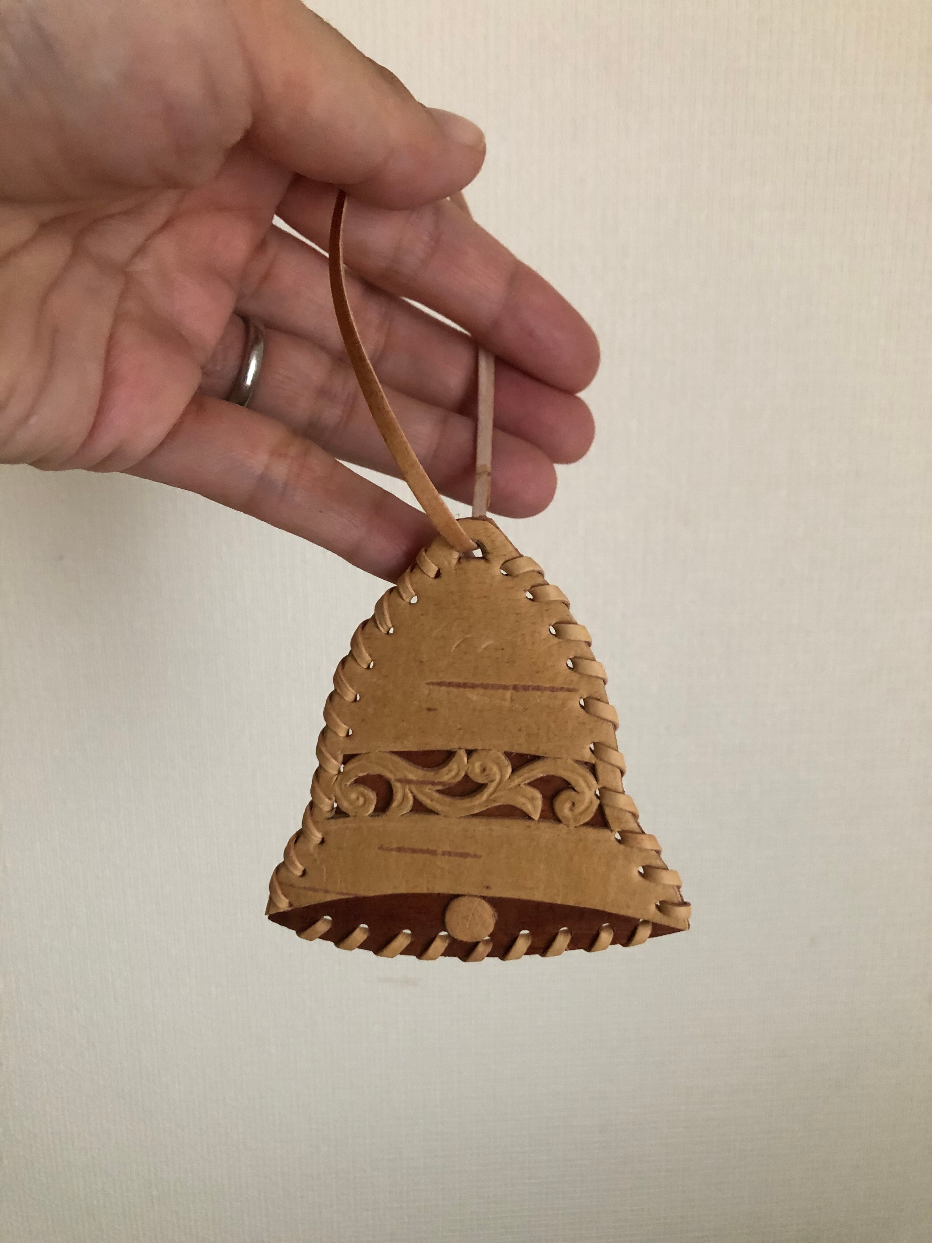 ロシアの白樺職人さん作の、白樺の樹皮をカットして細工した雪の結晶と、ベル、星のオーナメントの3点セットです。