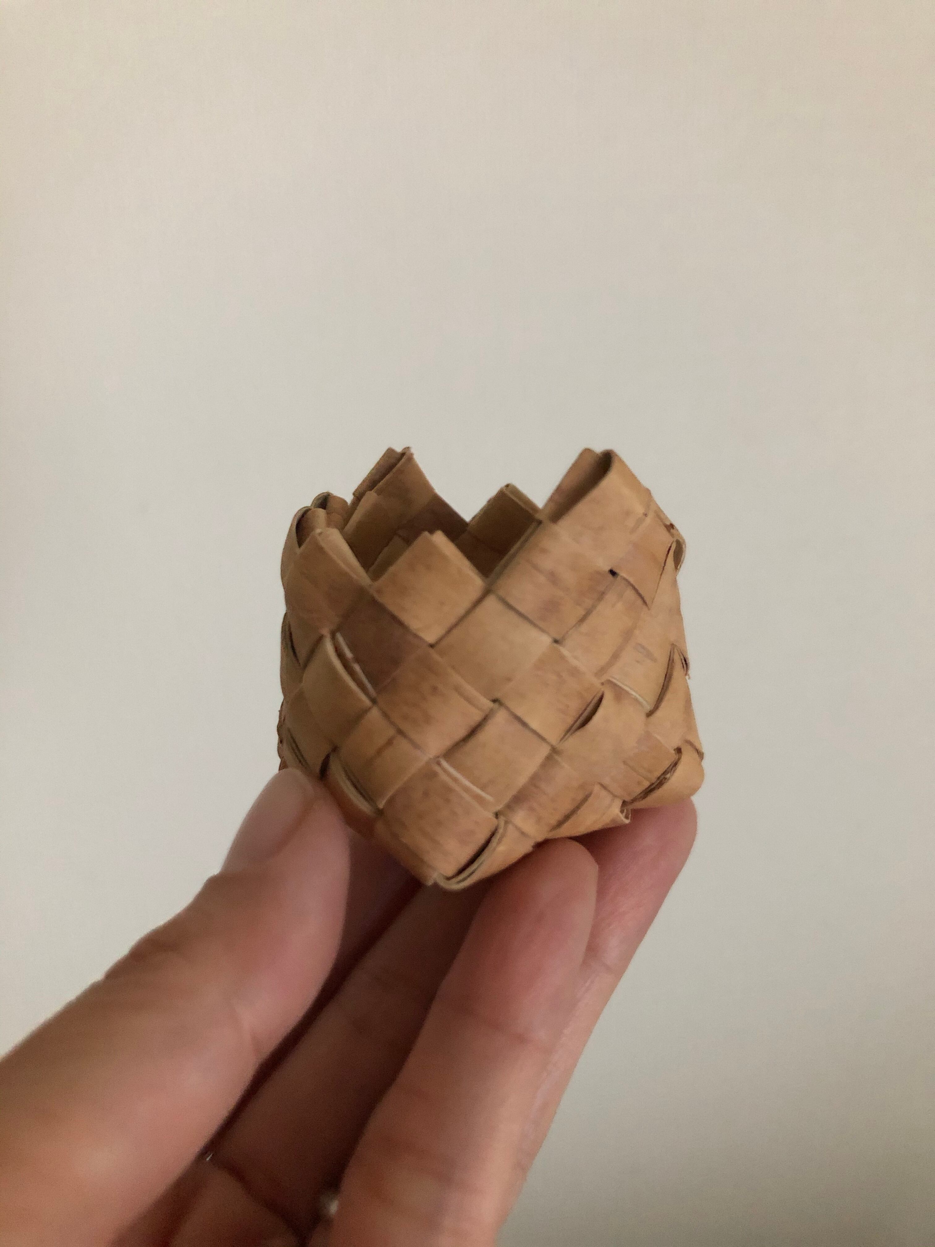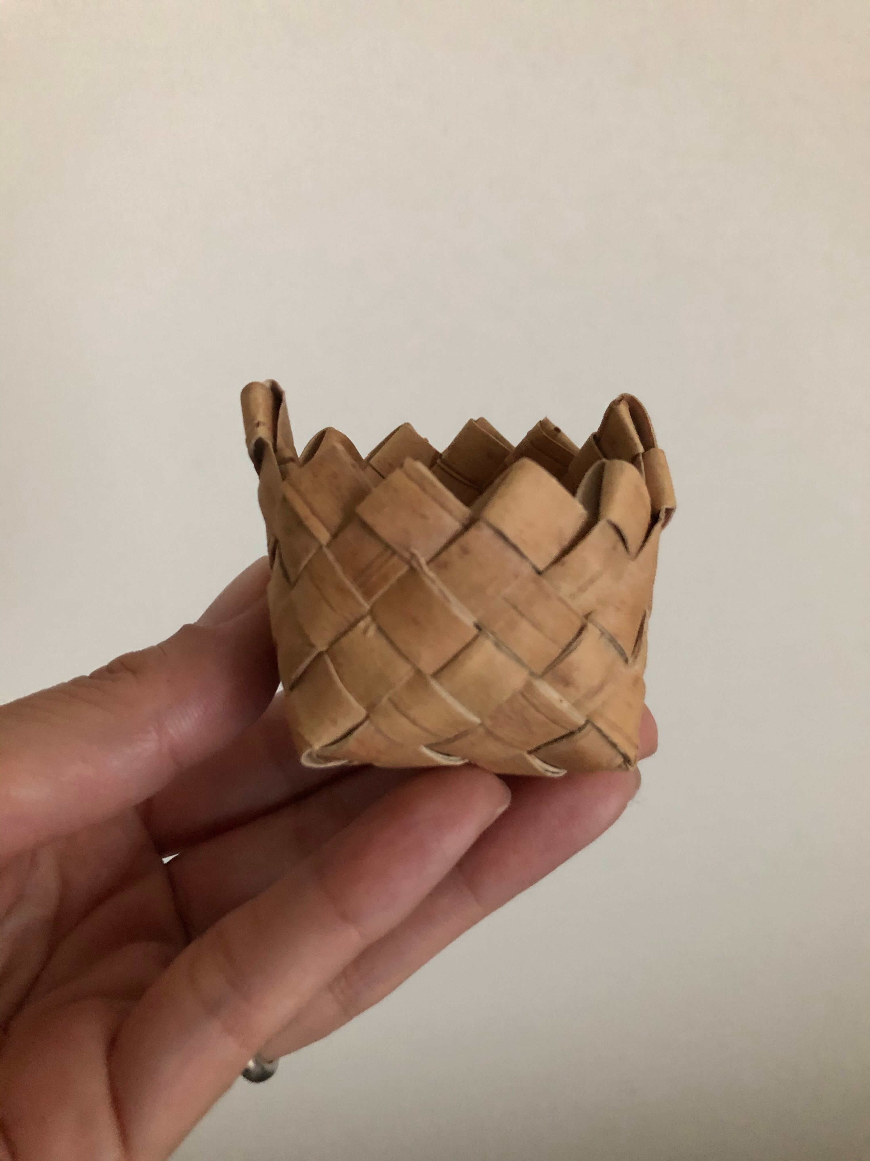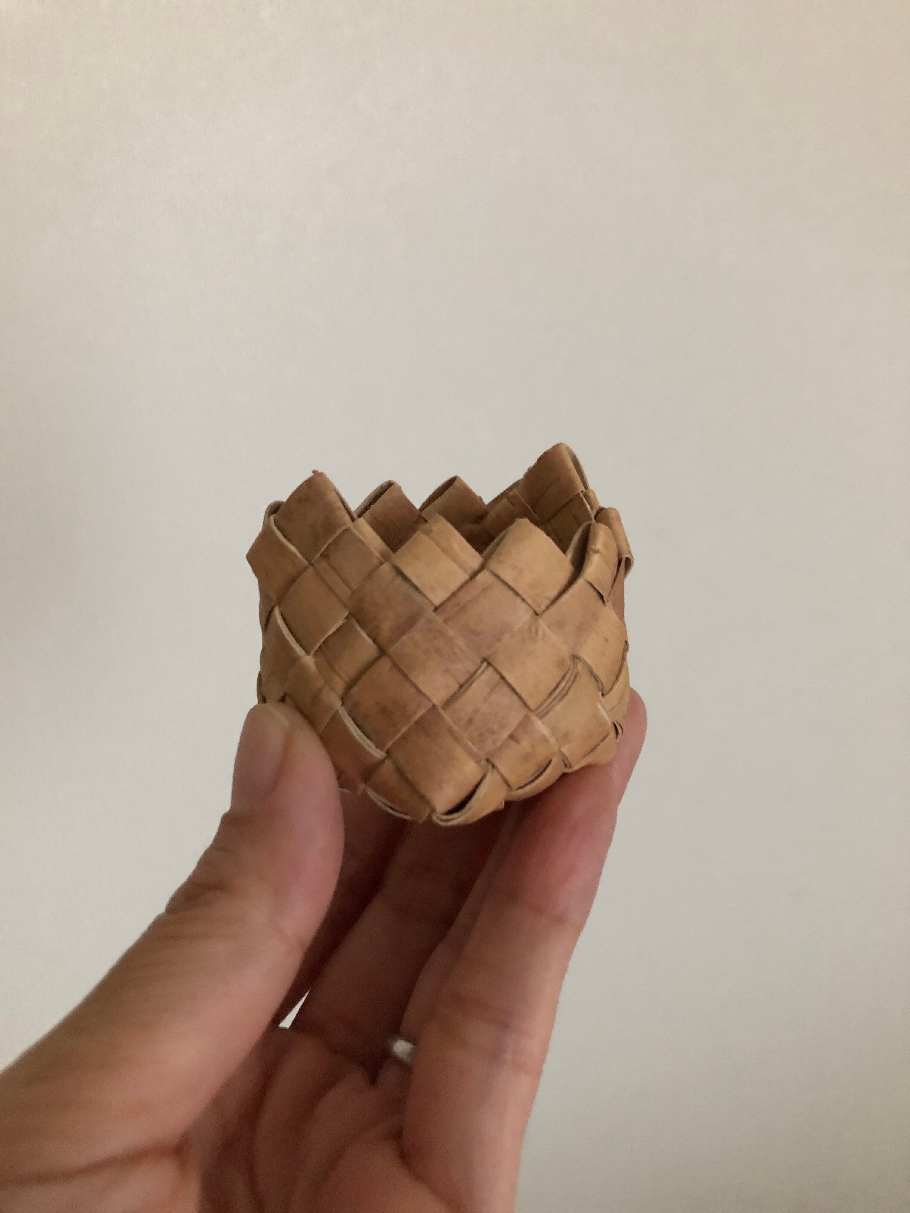 手のひらに乗るミニチュアサイズが可愛らしい、白樺のかご♫