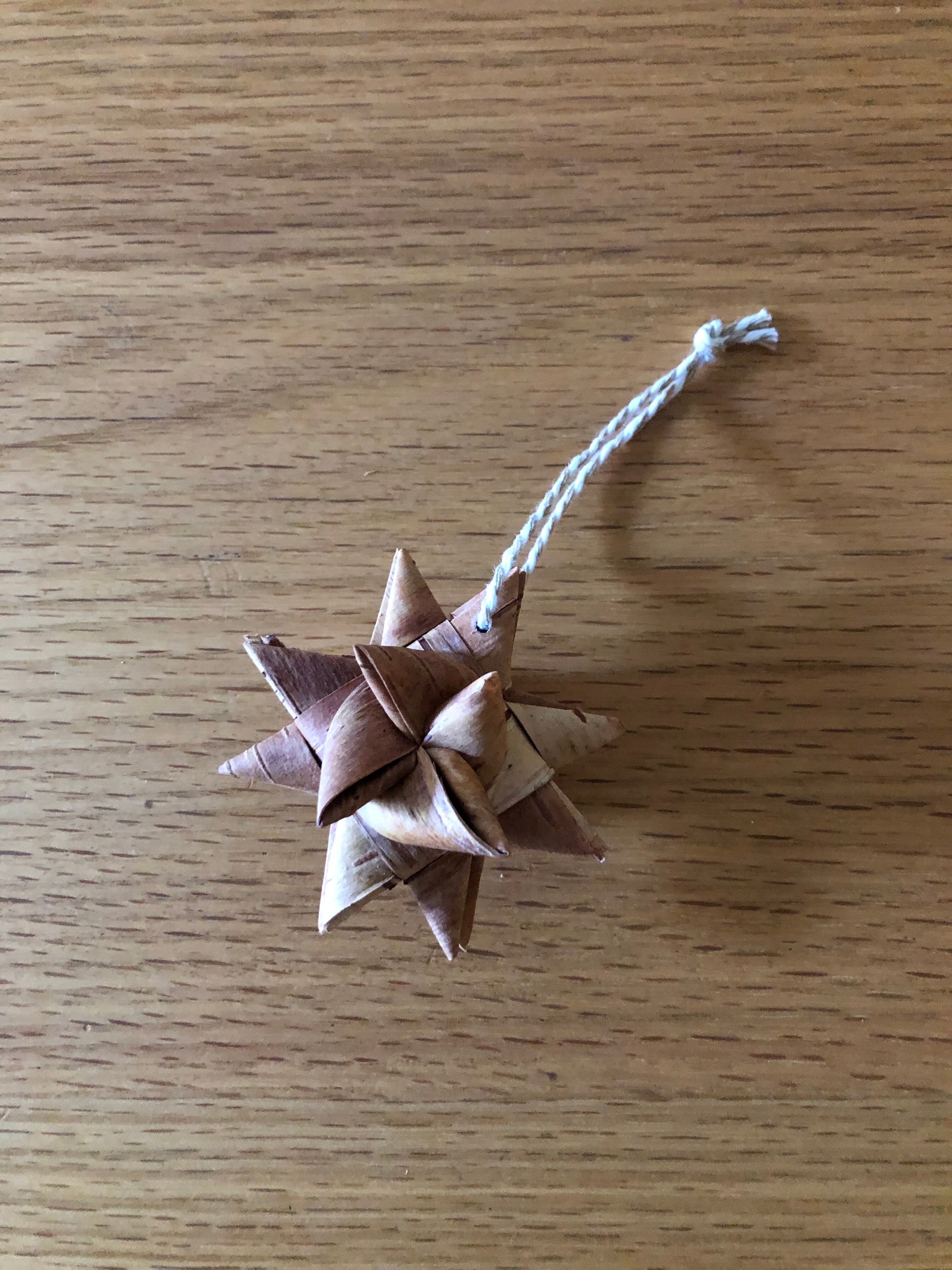コロンとした形が可愛い、白樺の星のオーナメントです。