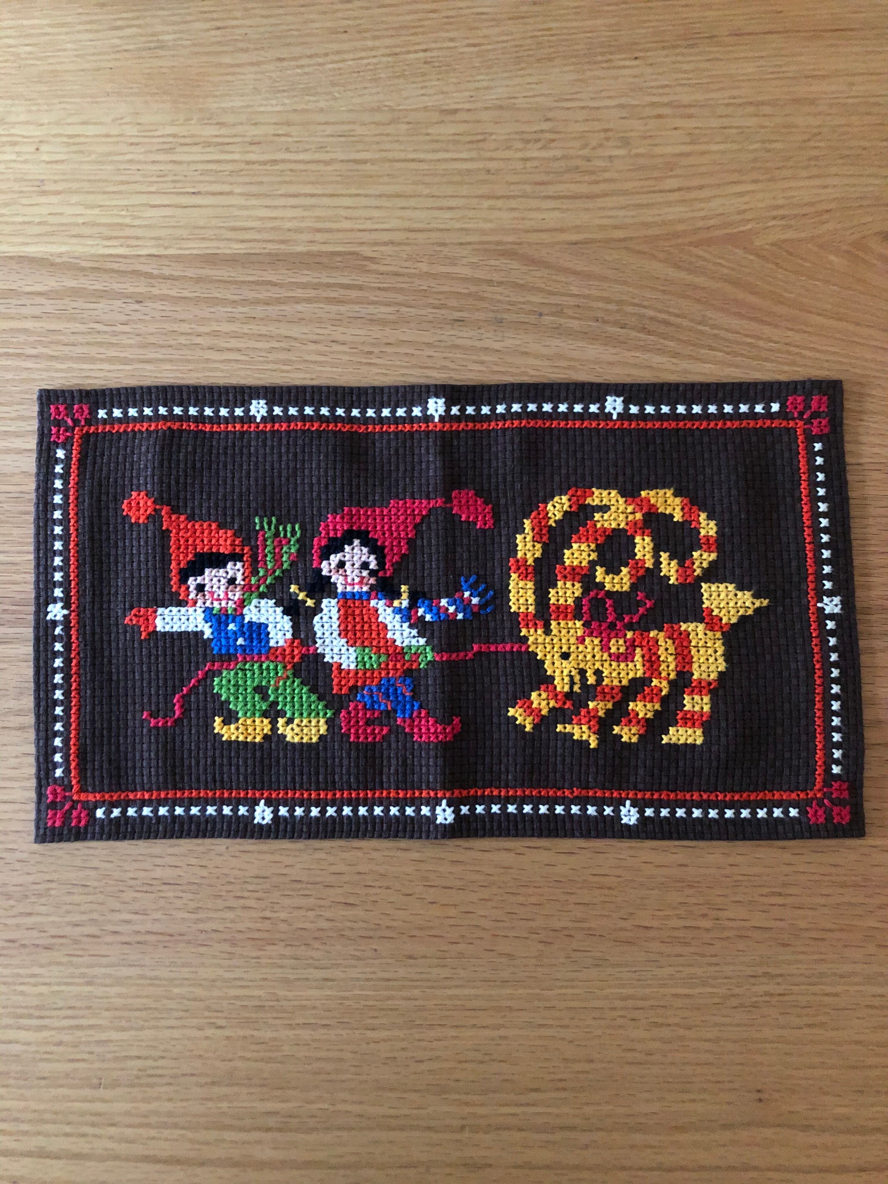 スウェーデンのヴィンテージの刺繍の横長タイプのロングクロスです。1970年代のもの。