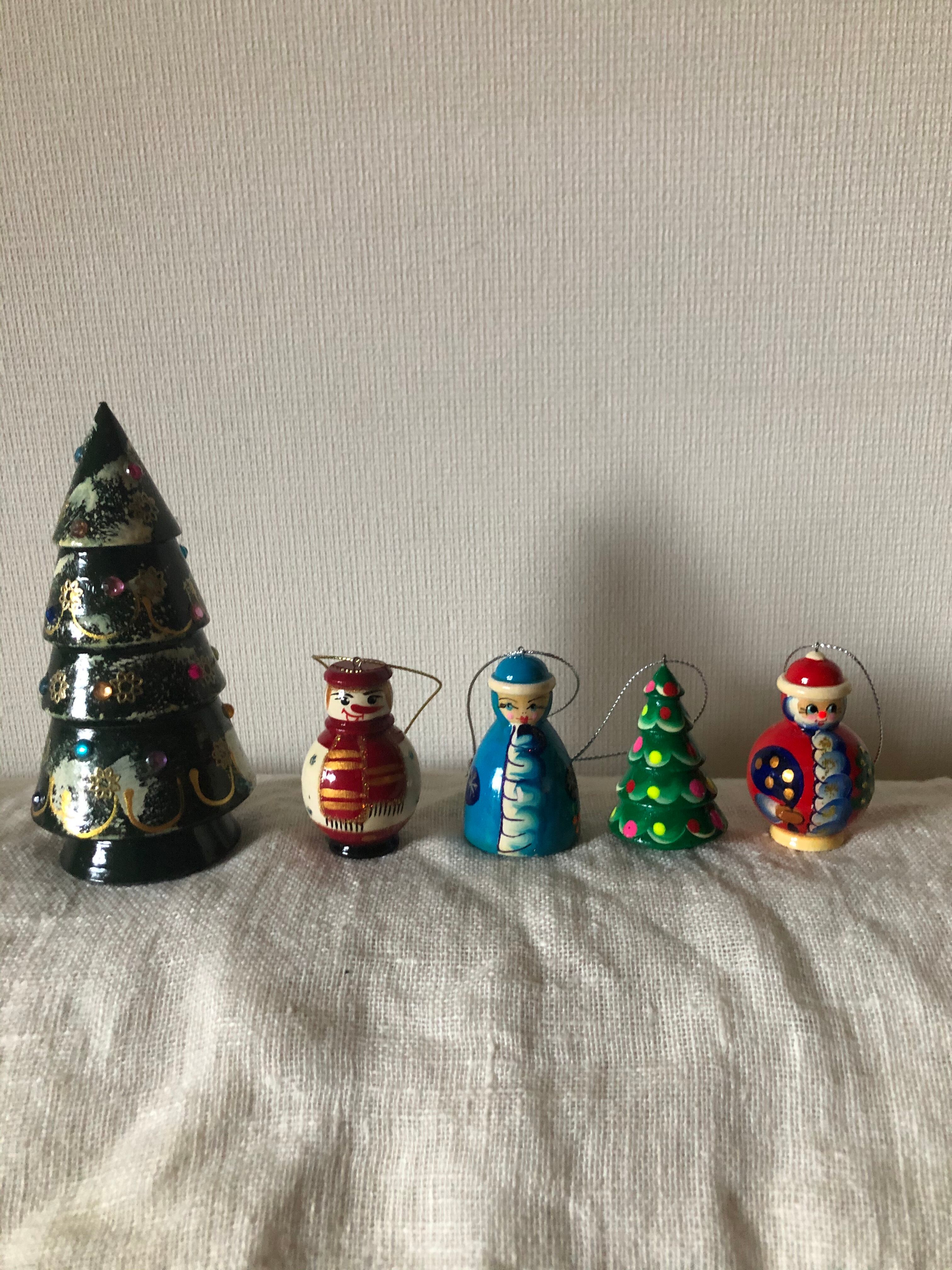 ロシアのマトリョーシカ作家さん作のクリスマスのオーナメント4点セットになります。