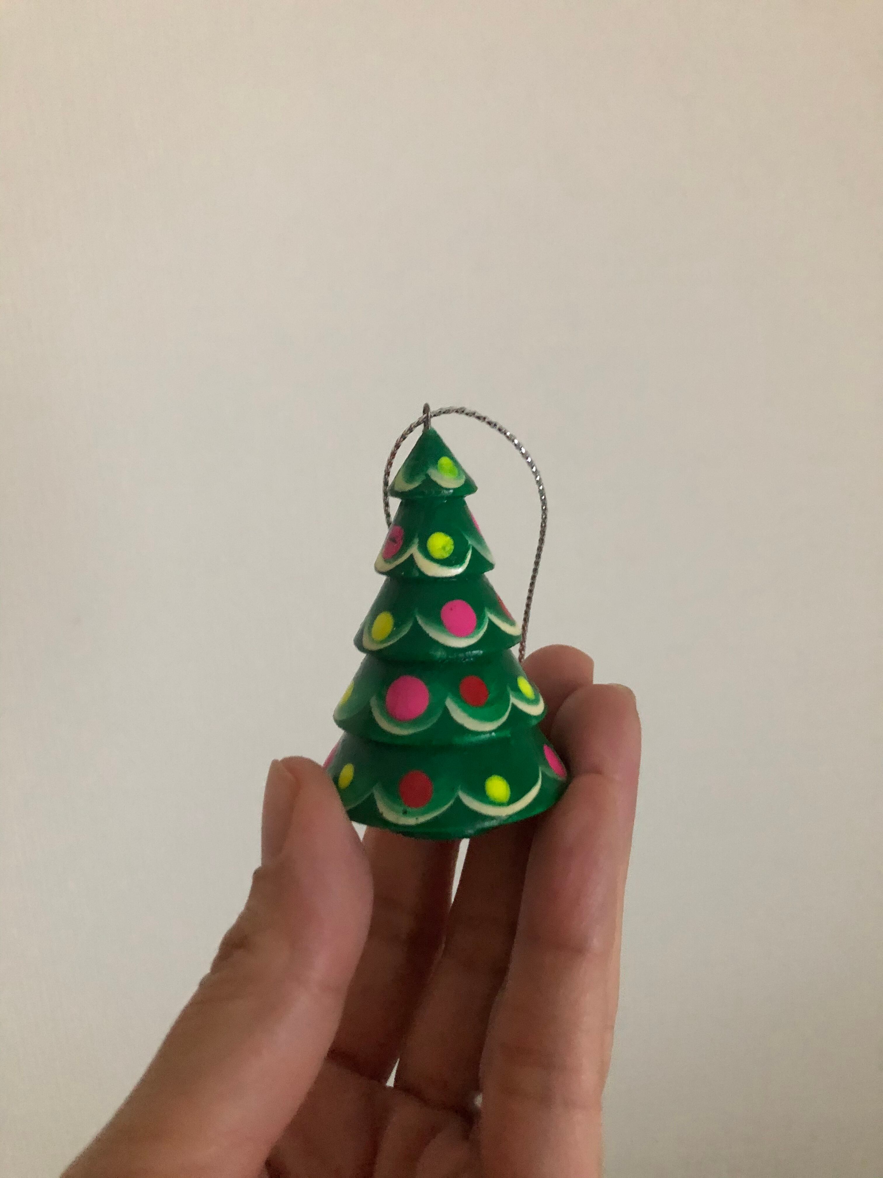 1つ1つハンドペイントで絵付けされたサンタクロース、クリスマスツリー、スノーガール、雪だるまのオーナメントセットです。