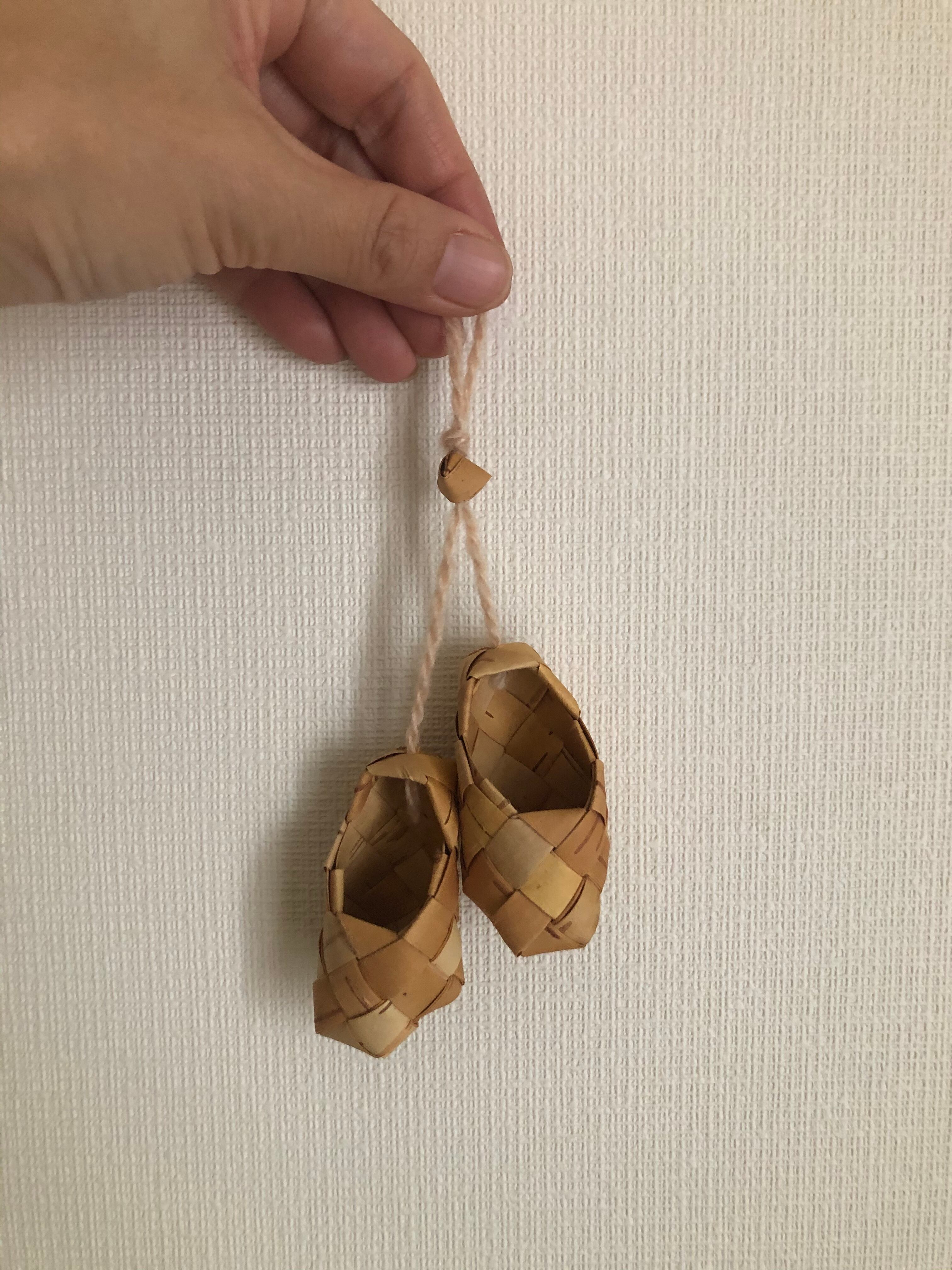 ロシアの白樺細工の職人さんが作った、小人の靴のオーナメントです。