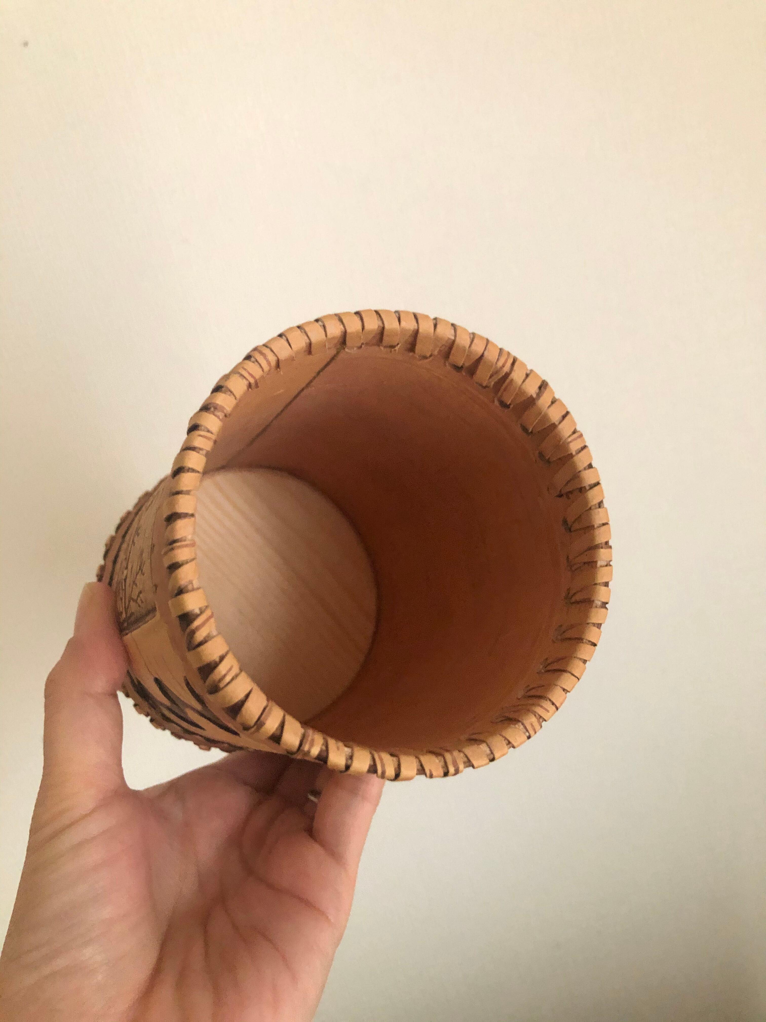 ロシアの白樺細工、ベレスタの型押しの筒型キャニスターになります。
