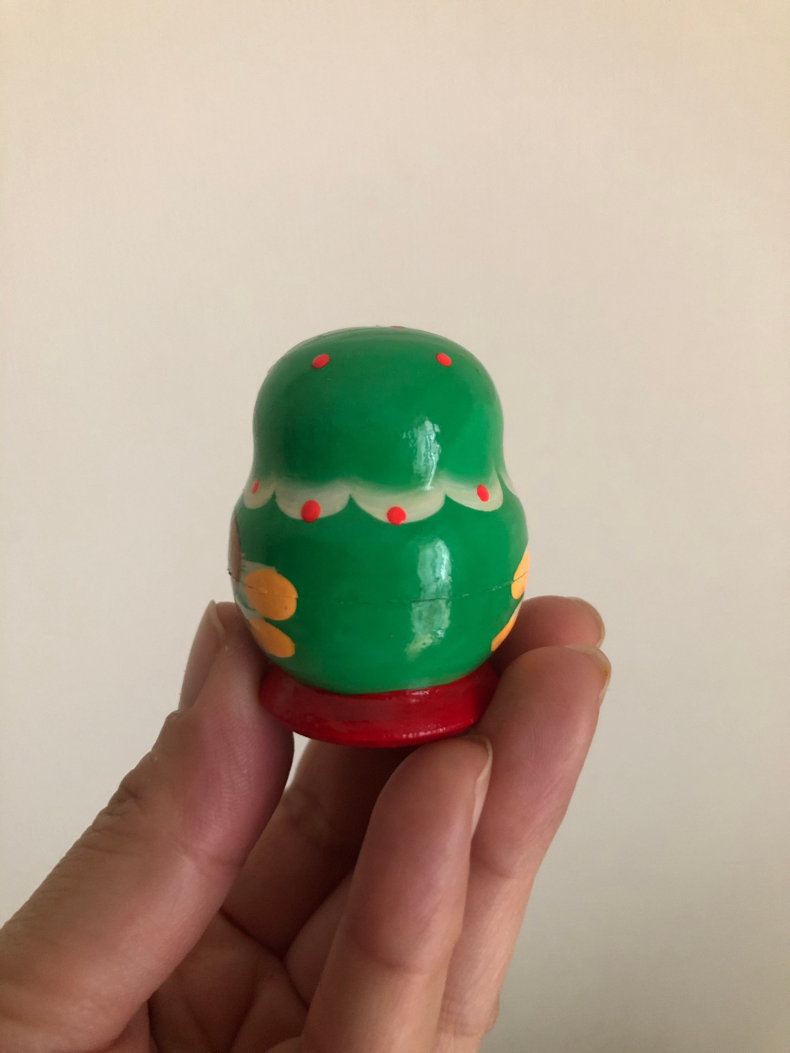 パッと明るいグリーンの色が可愛らしいマトリョーシカです♫