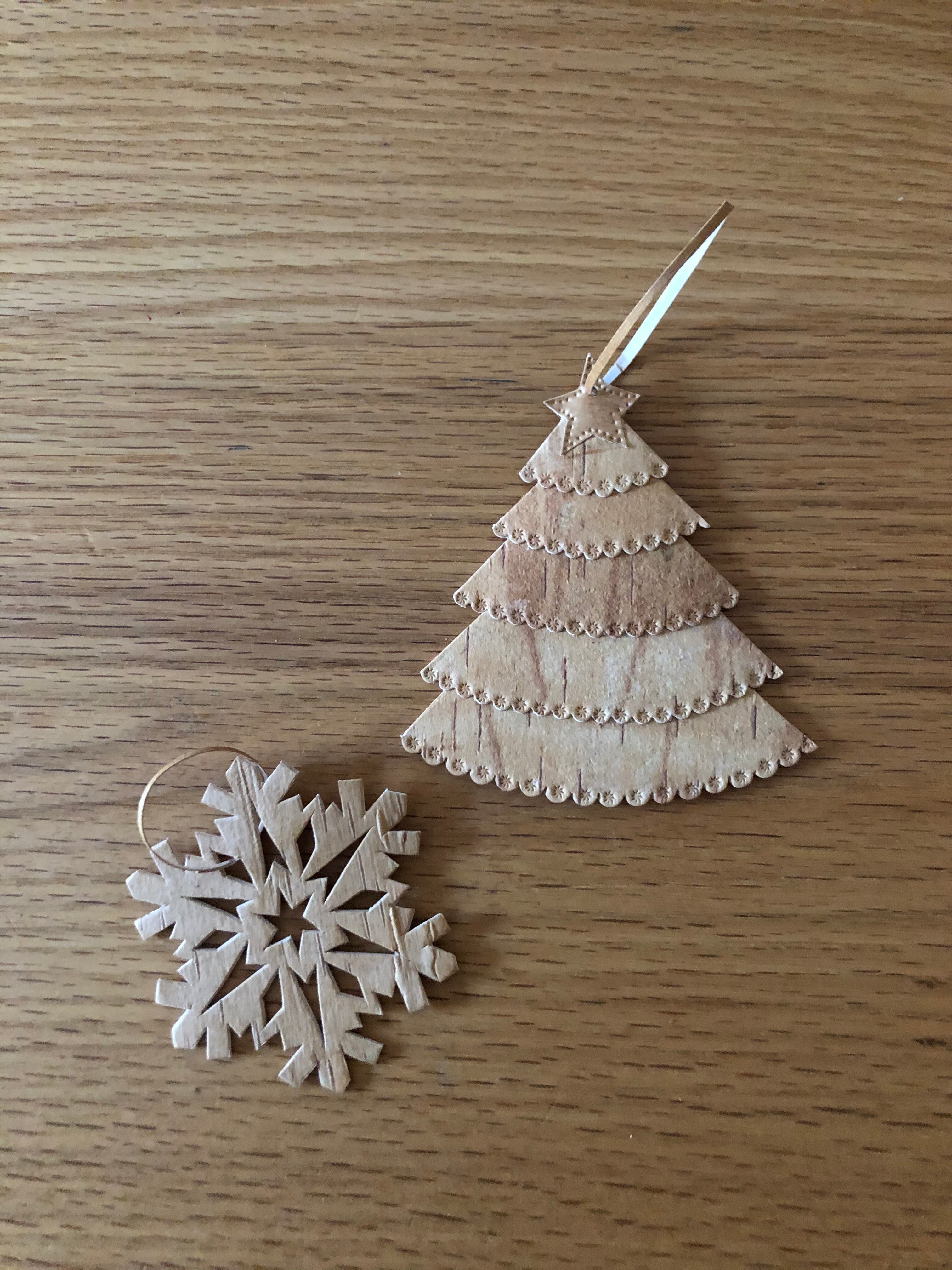 今取り扱ってる、白樺のオーナメントに比べると紐が短めなので、よりツリーなどに飾りやすいタイプになります。