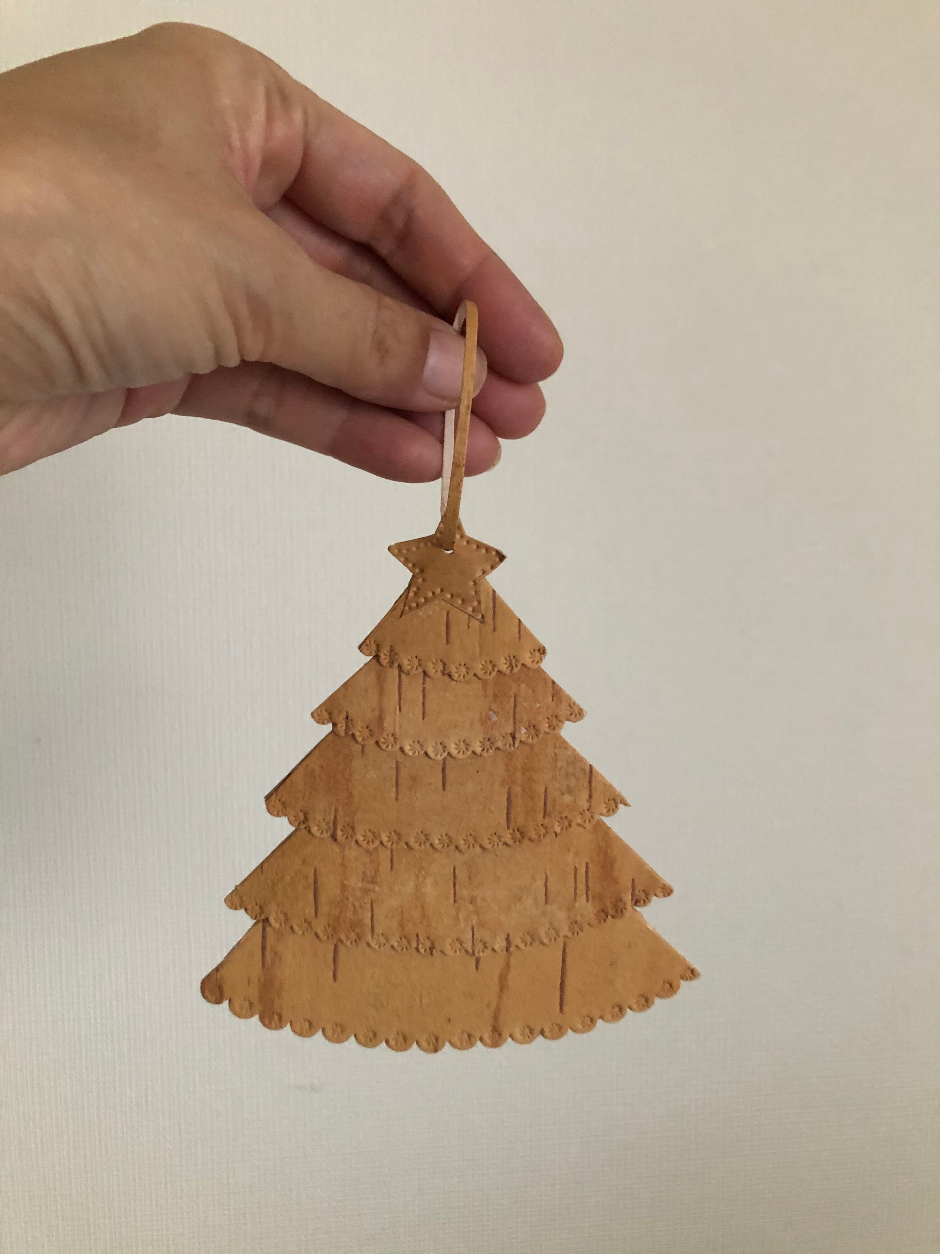 今取り扱ってる、白樺のオーナメントに比べると紐が短めなので、よりツリーなどに飾りやすいタイプになります。