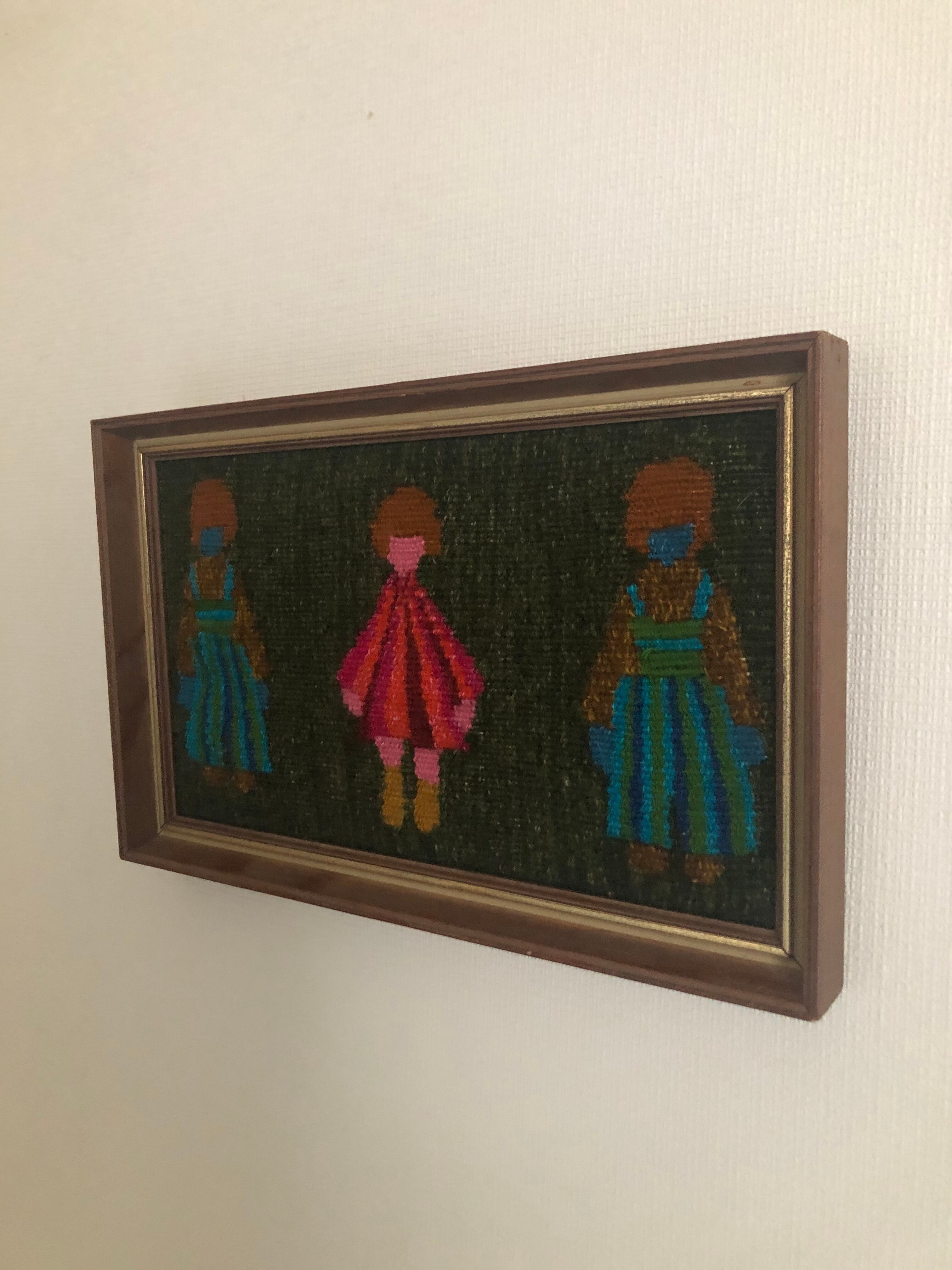 北欧 スウェーデン 女の子の刺繍飾り 額入り ヴィンテージ