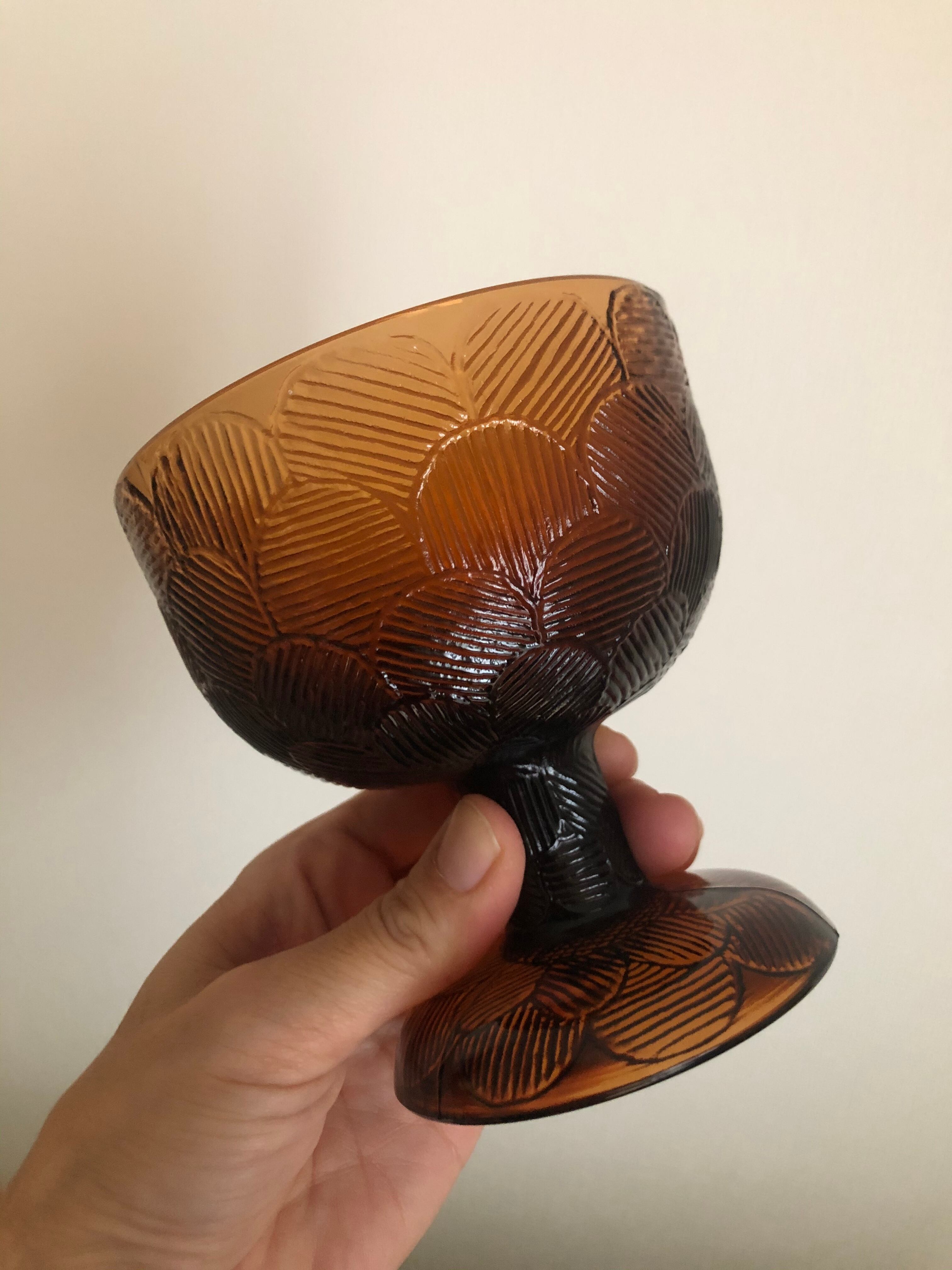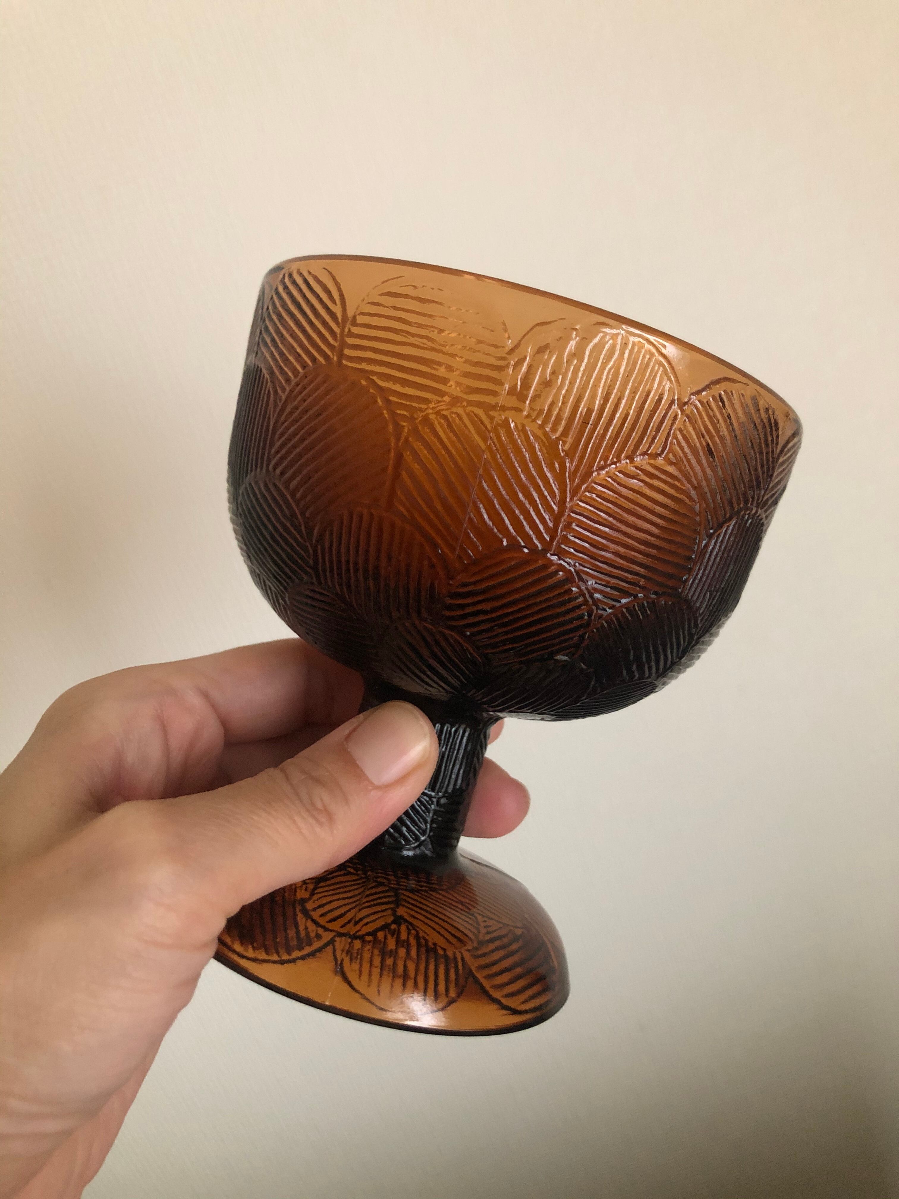 厚手のガラスの深いブラウンの色味が、北欧ヴィンテージインテリアやアンティークインテリアにピッタリなデザートボウルです。