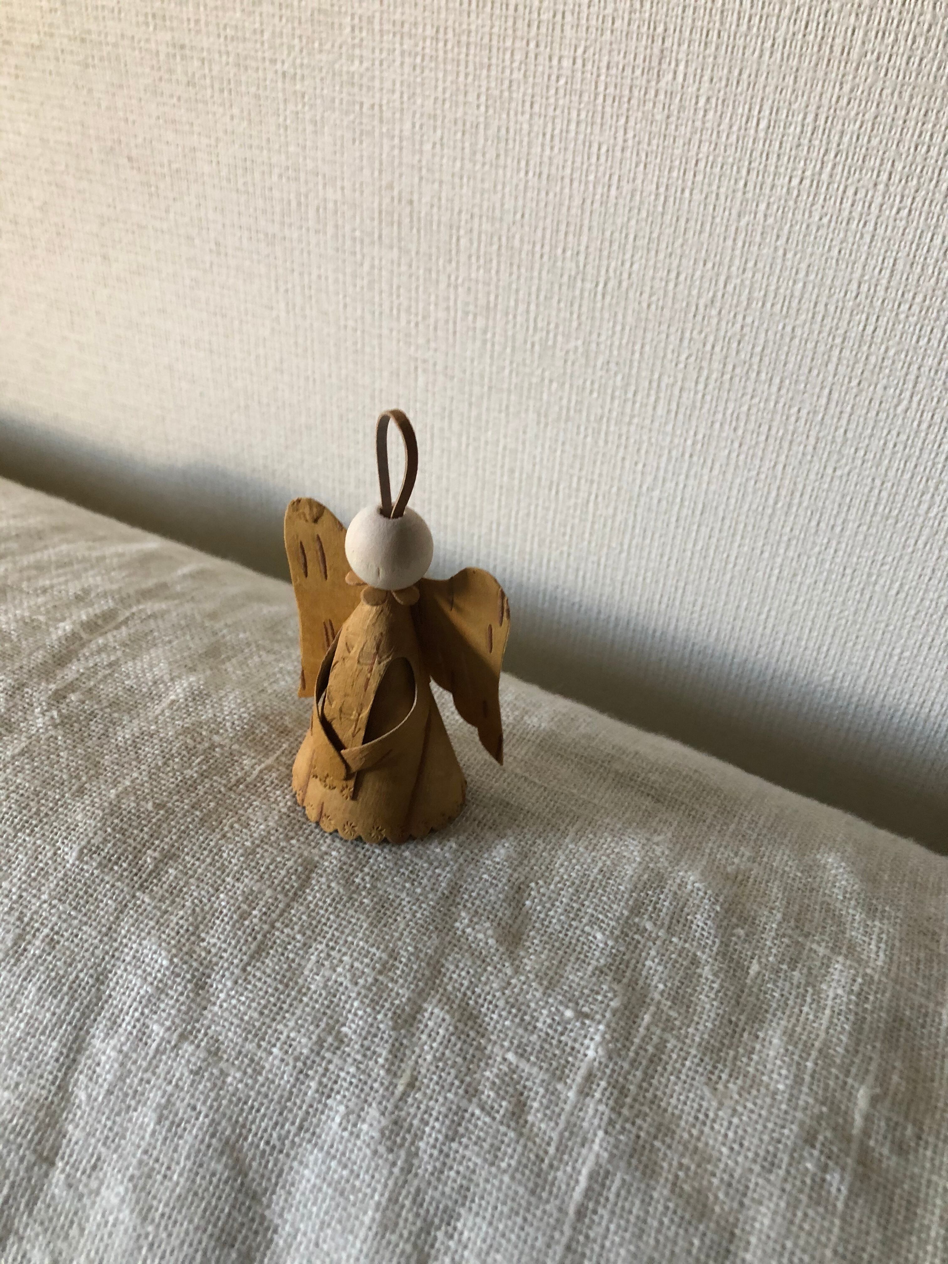まん丸の顔がなんとも愛らしい、白樺の樹皮で作られた天使のオーナメントです。