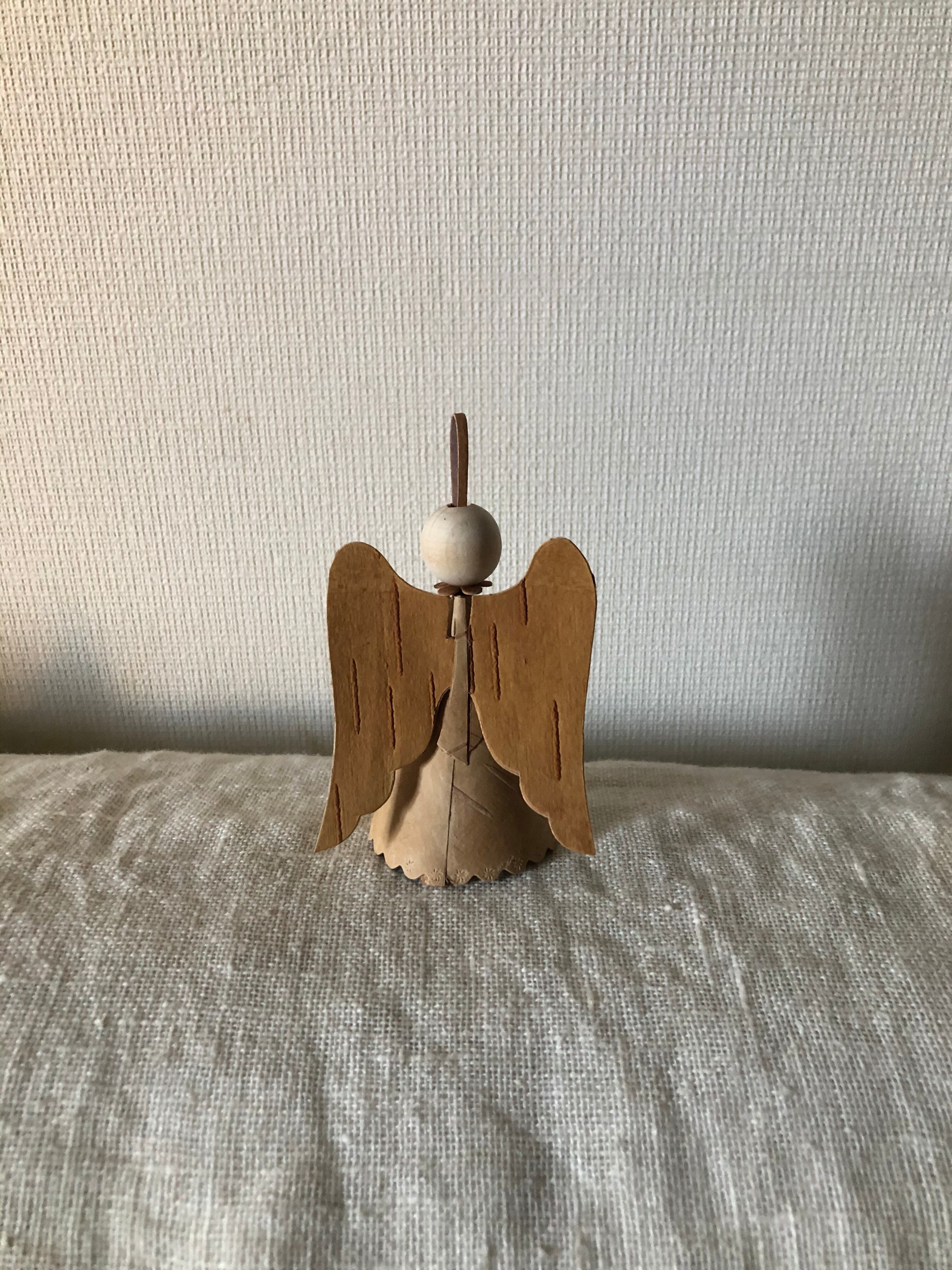 まん丸の顔がなんとも愛らしい、白樺の樹皮で作られた天使のオーナメントです。
