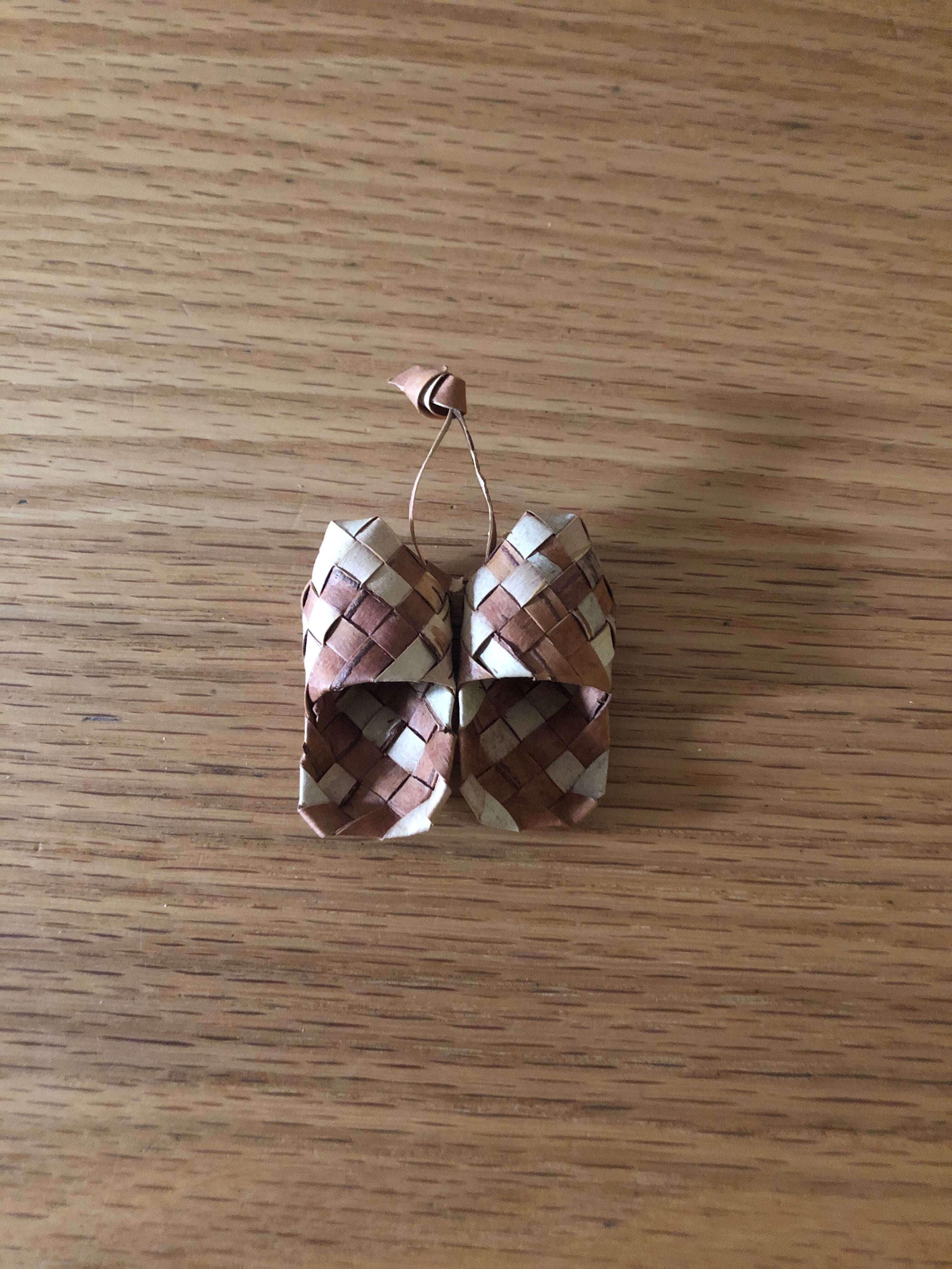 ロシアの白樺細工の職人さんが作った、小さなスリッパのオーナメントです。