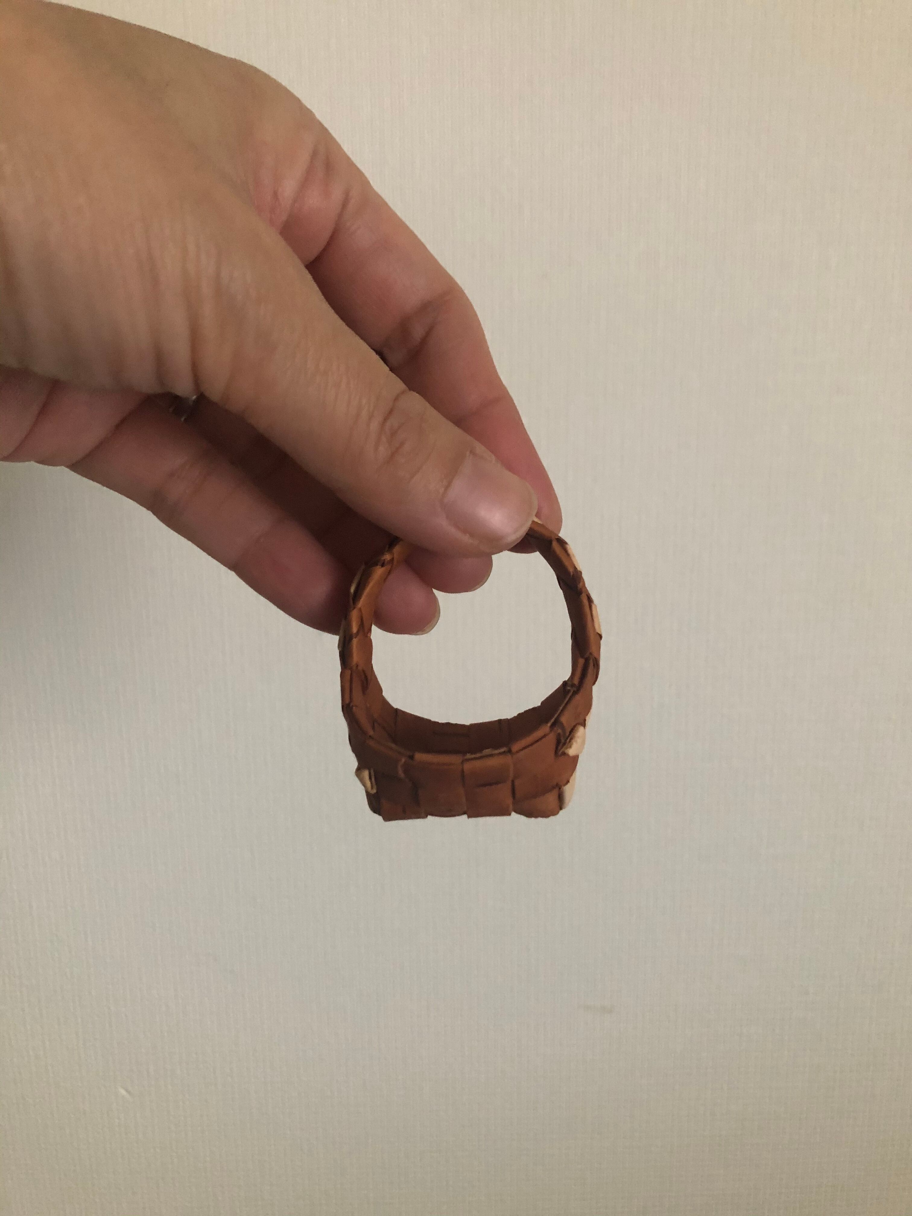 固めの白樺の皮でしっかり編まれた手のひらに乗るミニチュアサイズが可愛らしい、開口部が大きめの白樺のフラワーバスケット♫