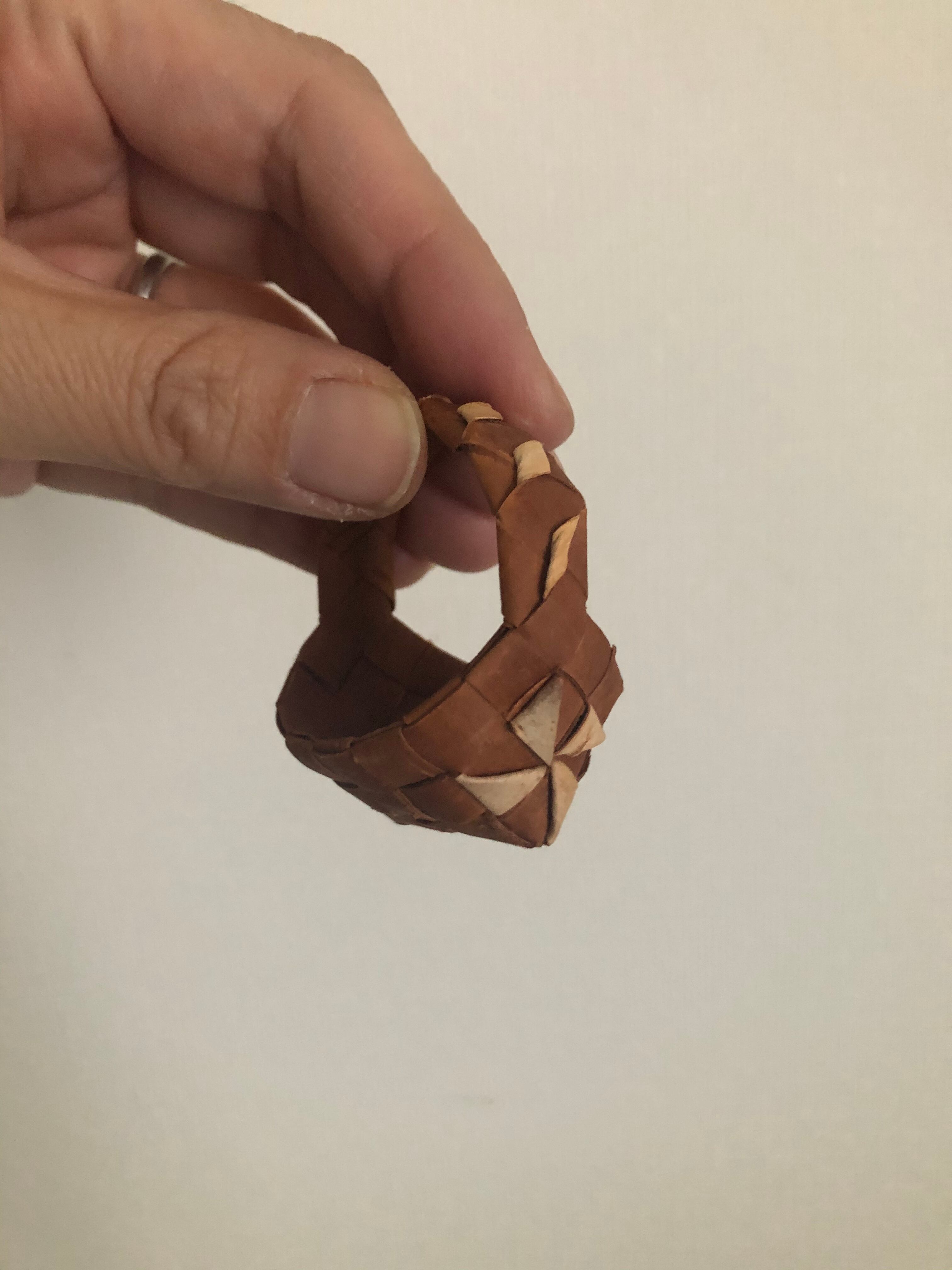 新品ですが、濃い色味の白樺の皮で編まれているので、ヴィンテージの白樺のいい色合いの雰囲気がすでに出ています♫