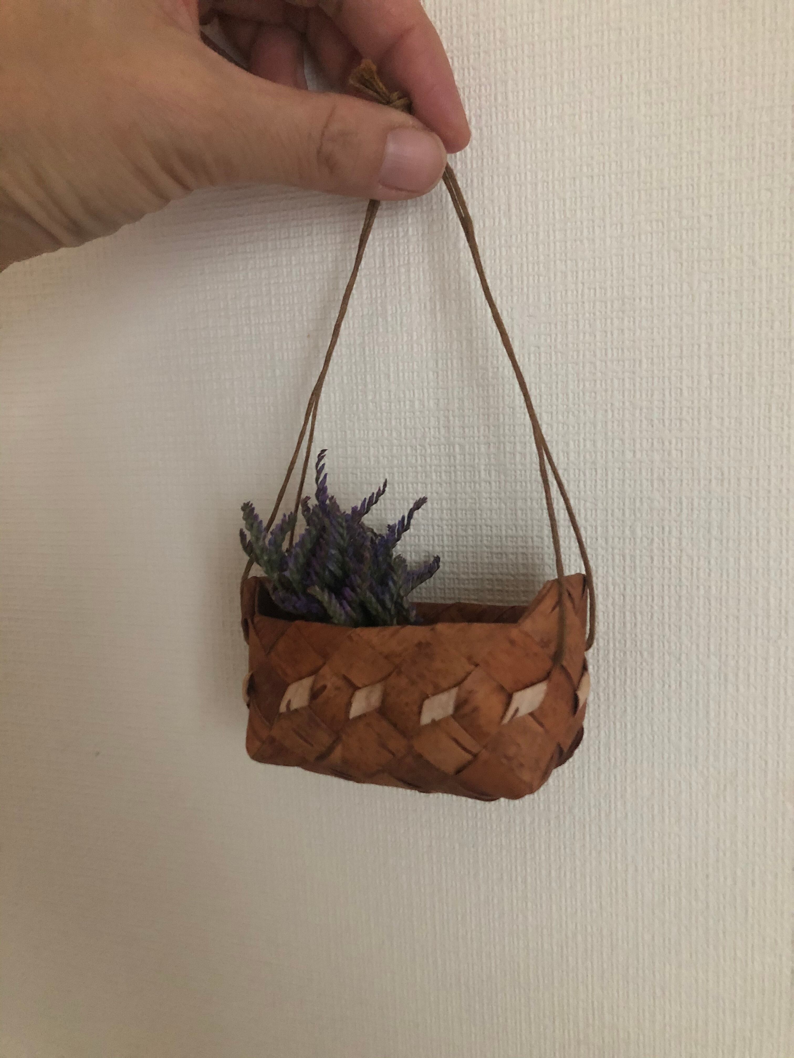 ロシア 白樺の紐付きバスケット ドライフラワー付き