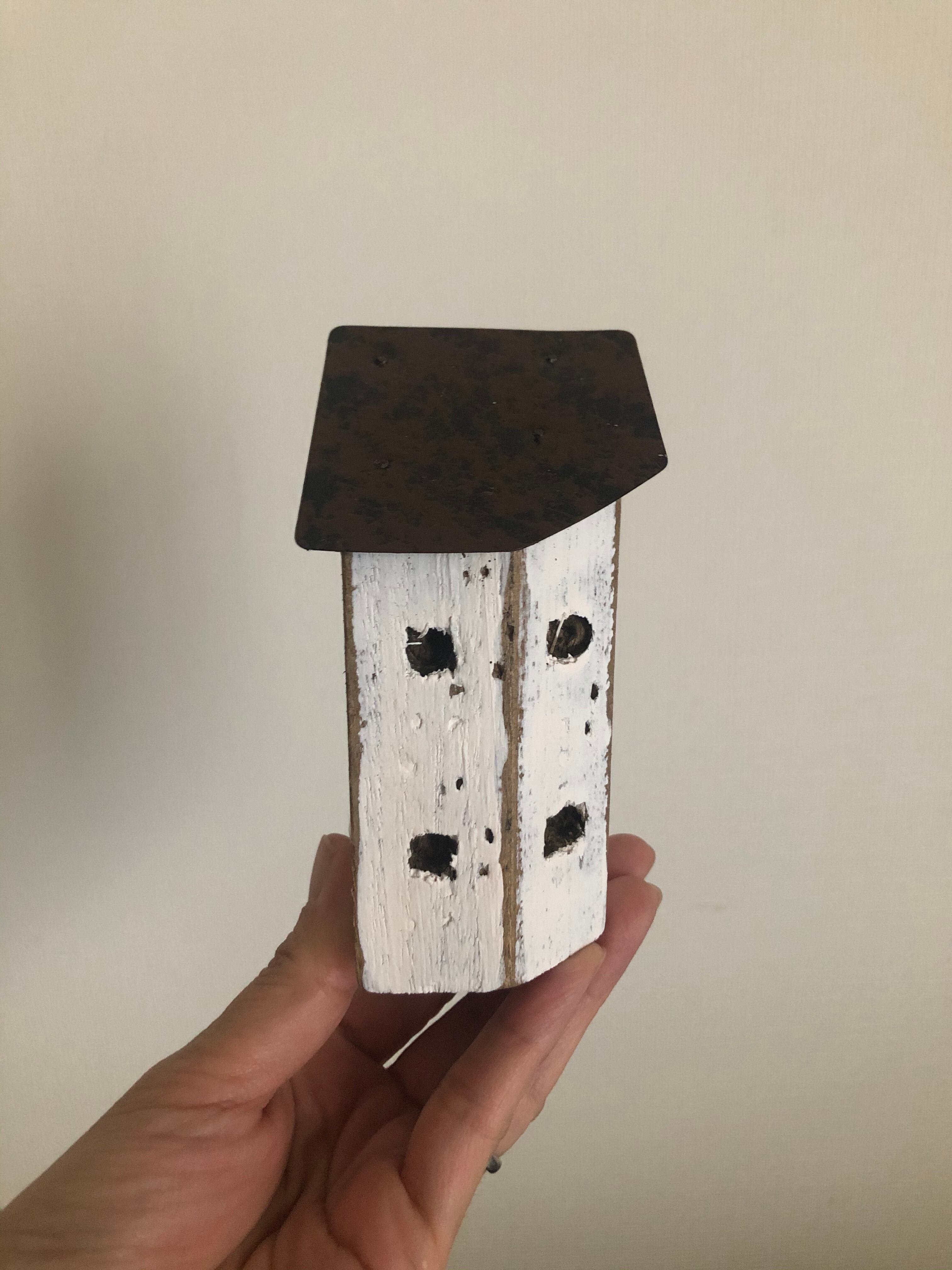 木製のおうち型のオブジェ3点セットになります。屋根は薄い鉄製になります。