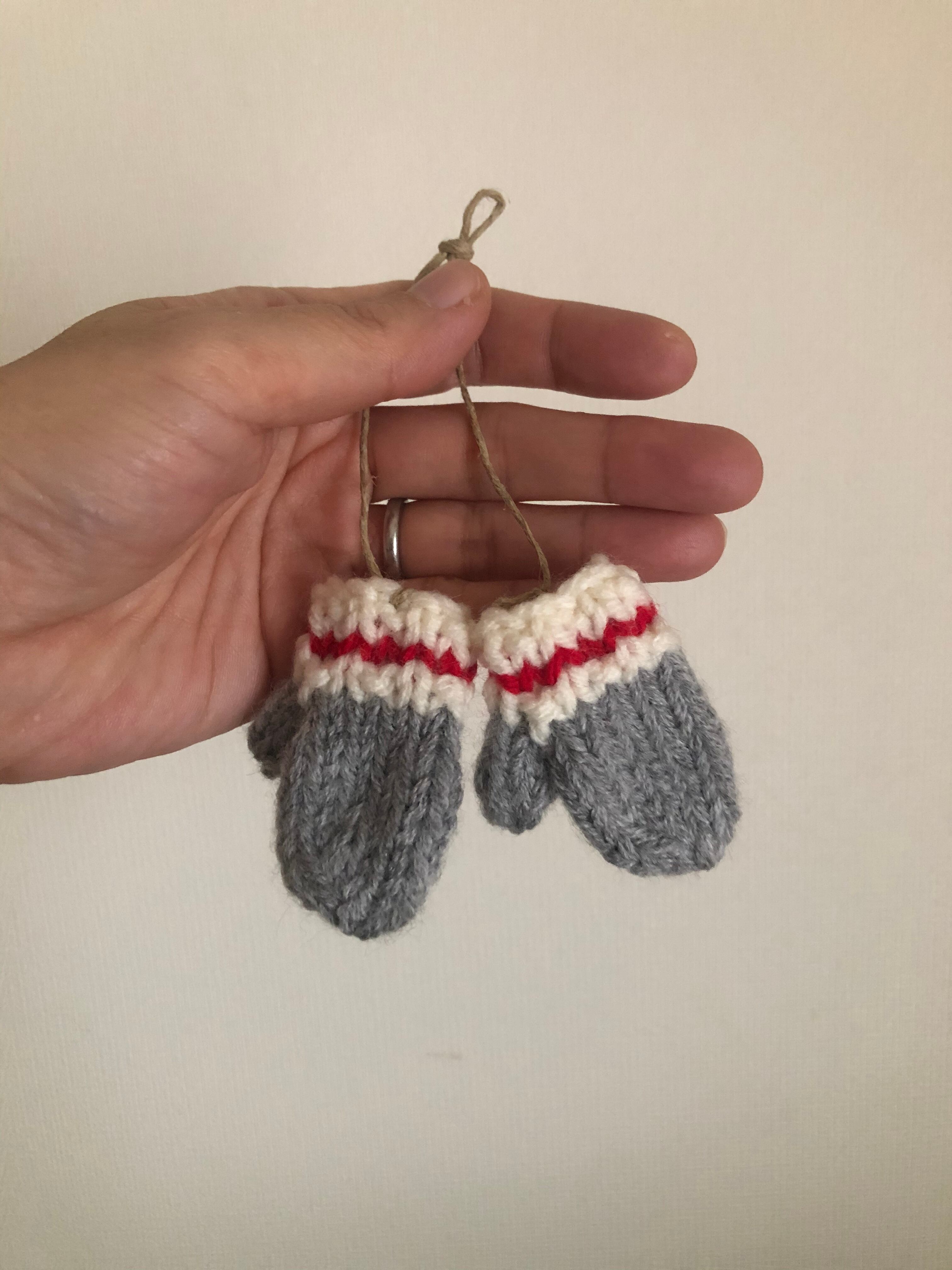ウールの毛糸で編まれたミトンのオーナメント♫