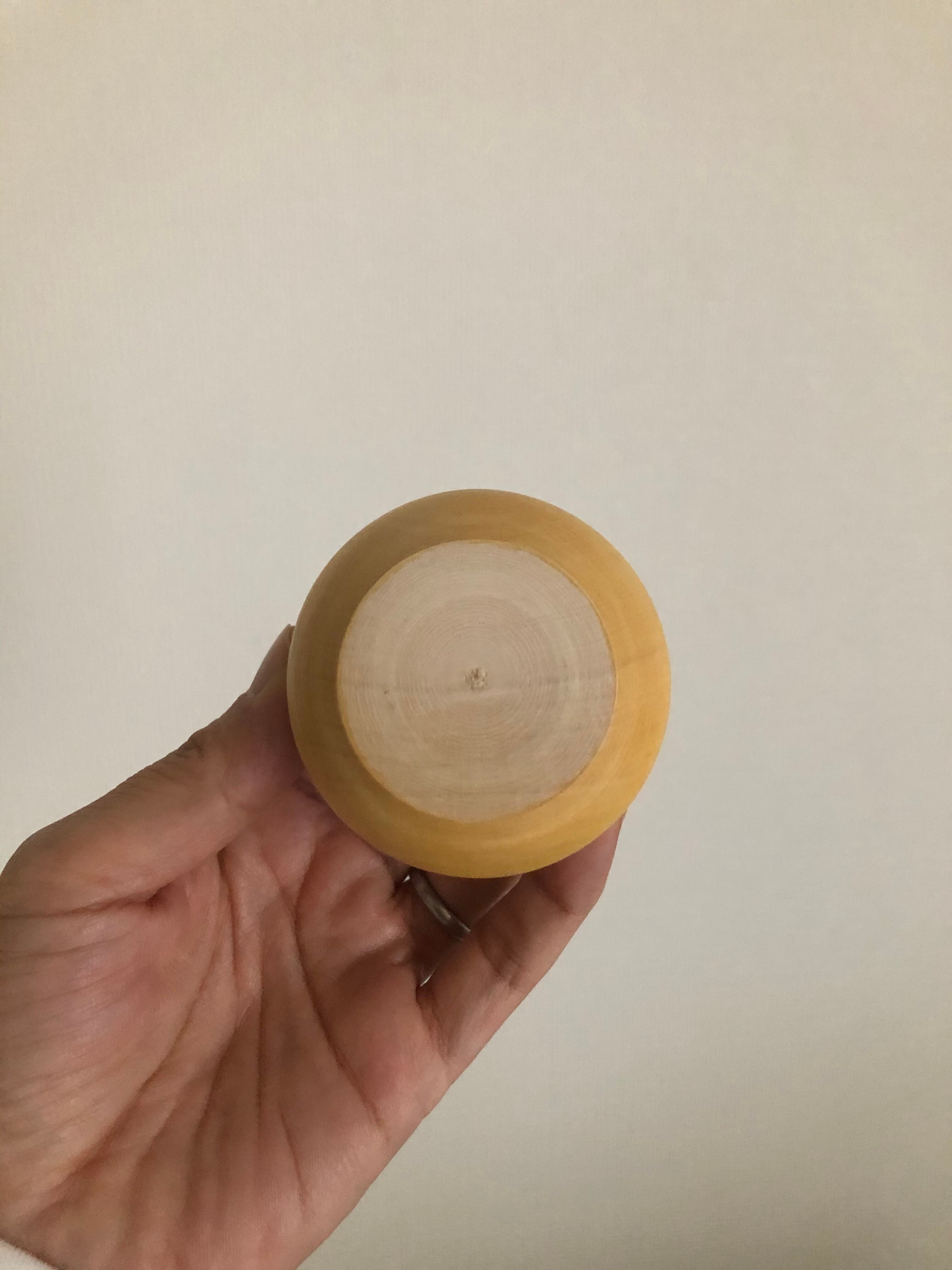 容器部分は菩提樹で、木目がとても細やかで肌触りもいい、綺麗な丸です。