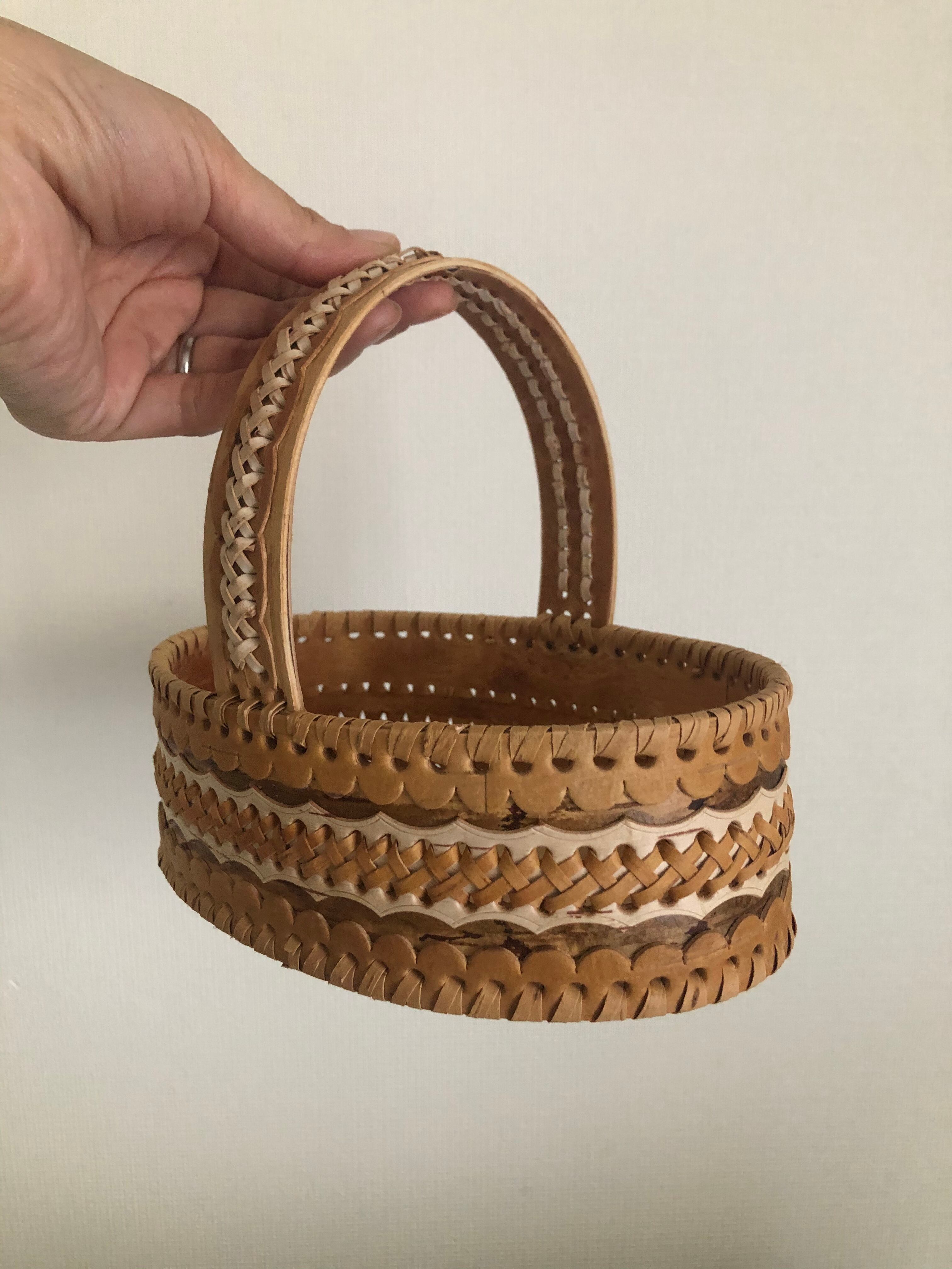 ロシアの白樺細工、ベレスタの持ち手付きの楕円型のバスケットなります。