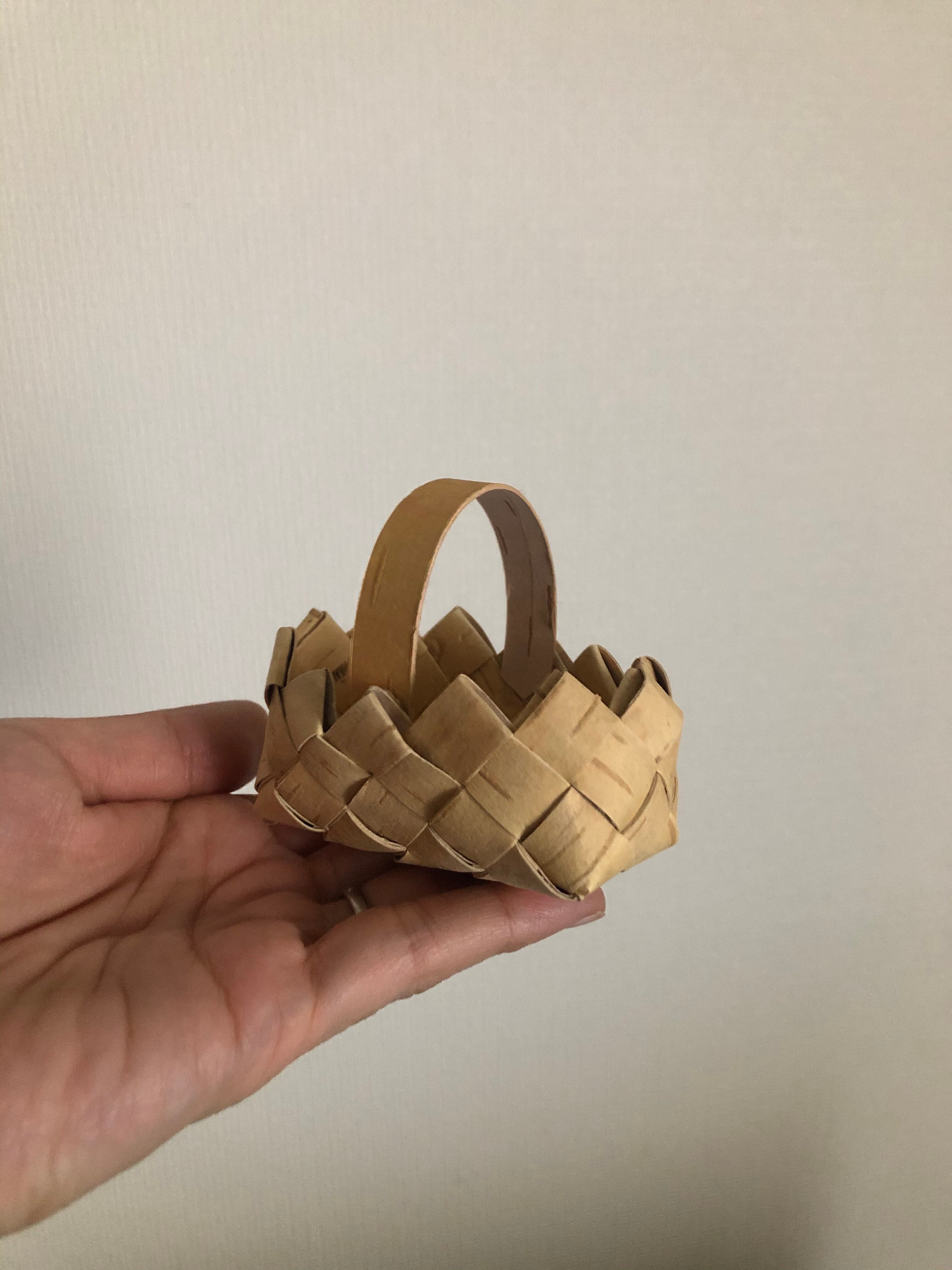 上のギザギザと、手のひらに乗るミニチュアサイズがとても可愛らしい、ナチュラルな白樺のバスケット♫