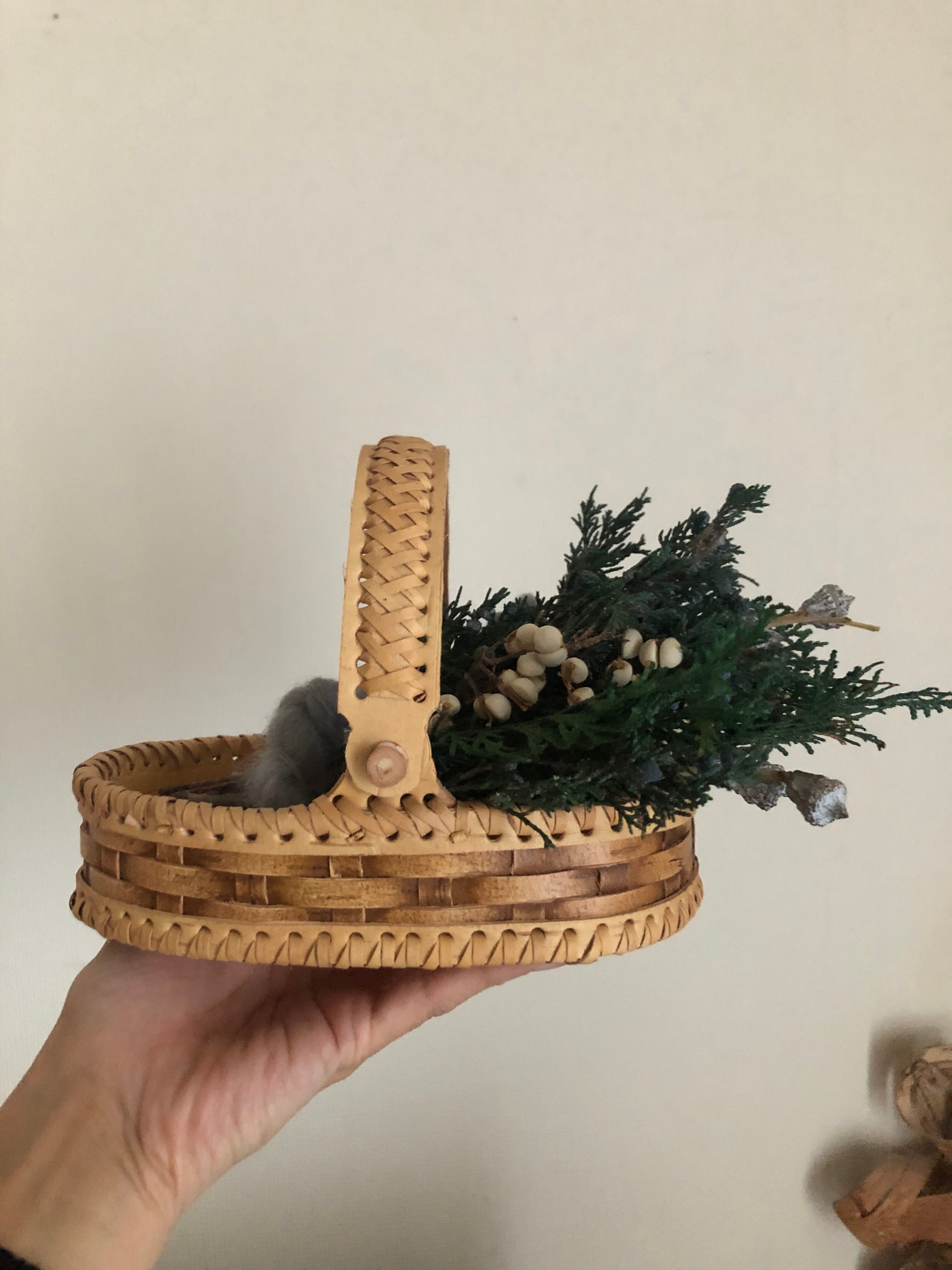 ロシアの白樺細工、ベレスタの持ち手付きのバスケットなります。